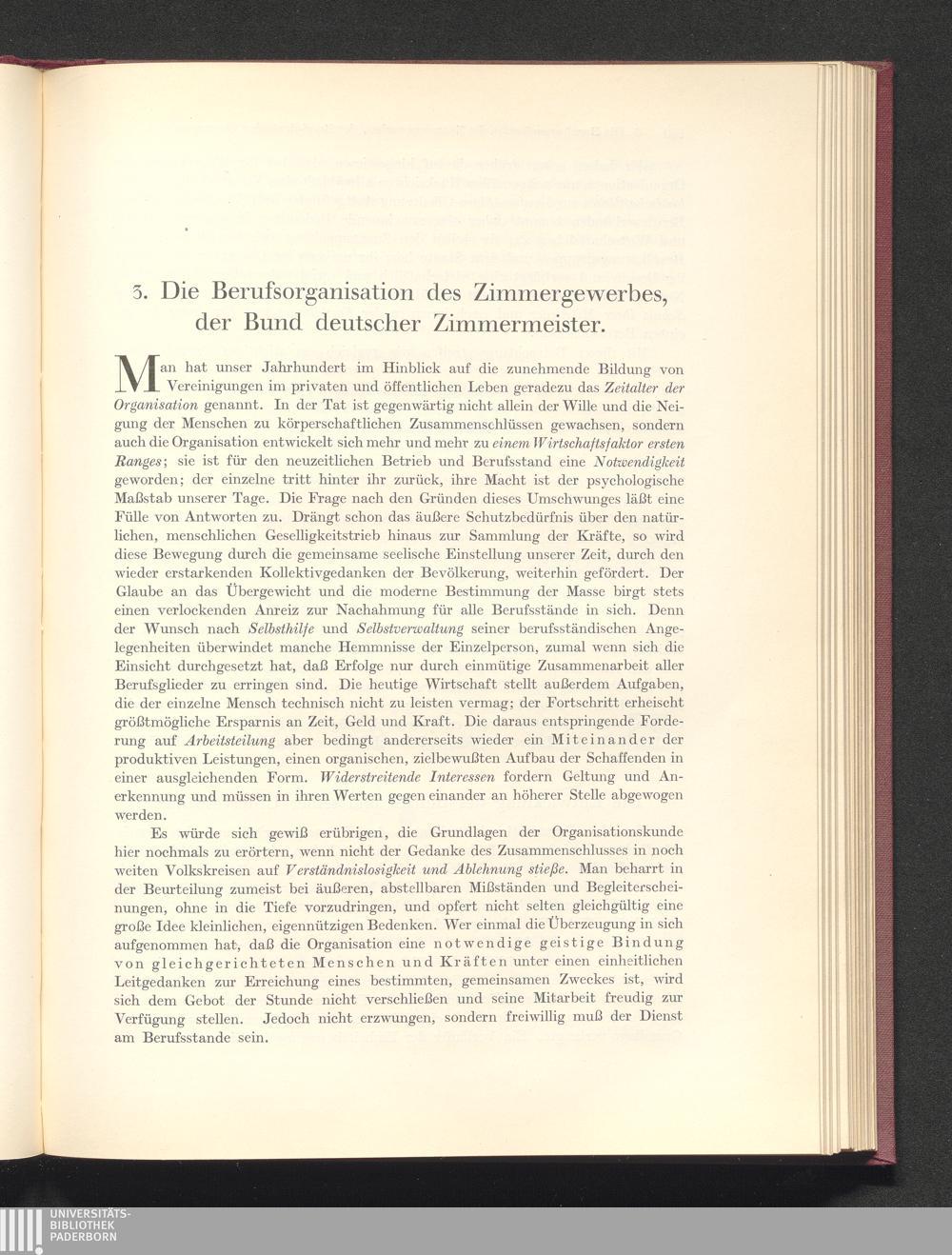 3. Die Berufsorganisation des Zimmergewerbes, der Bund deutscher Zimmermeister