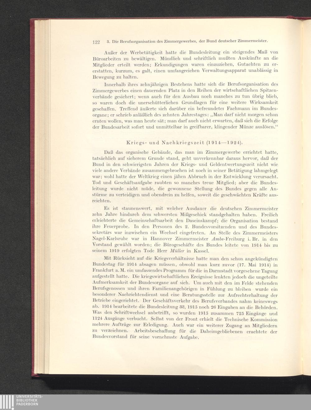 3. Die Berufsorganisation des Zimmergewerbes, der Bund deutscher Zimmermeister