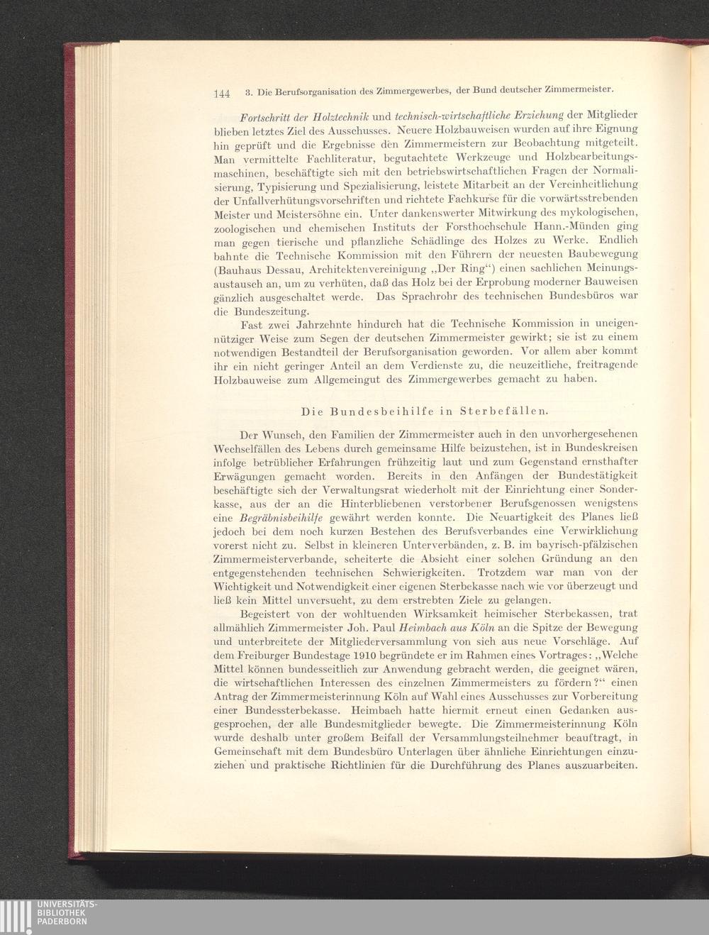 3. Die Berufsorganisation des Zimmergewerbes, der Bund deutscher Zimmermeister