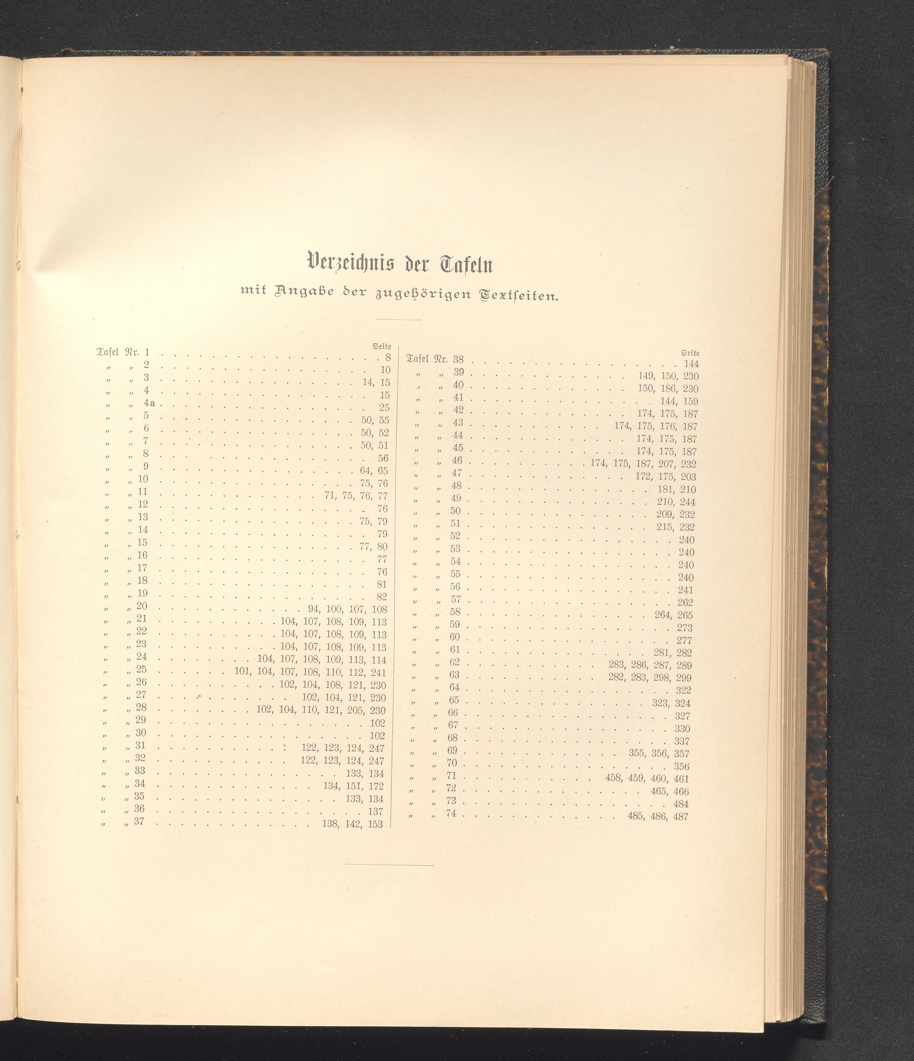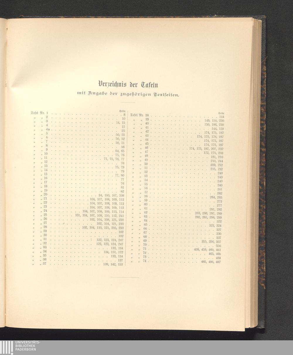 Verzeichnis der Tafeln mit Angabe der zugehörigen Textseiten.