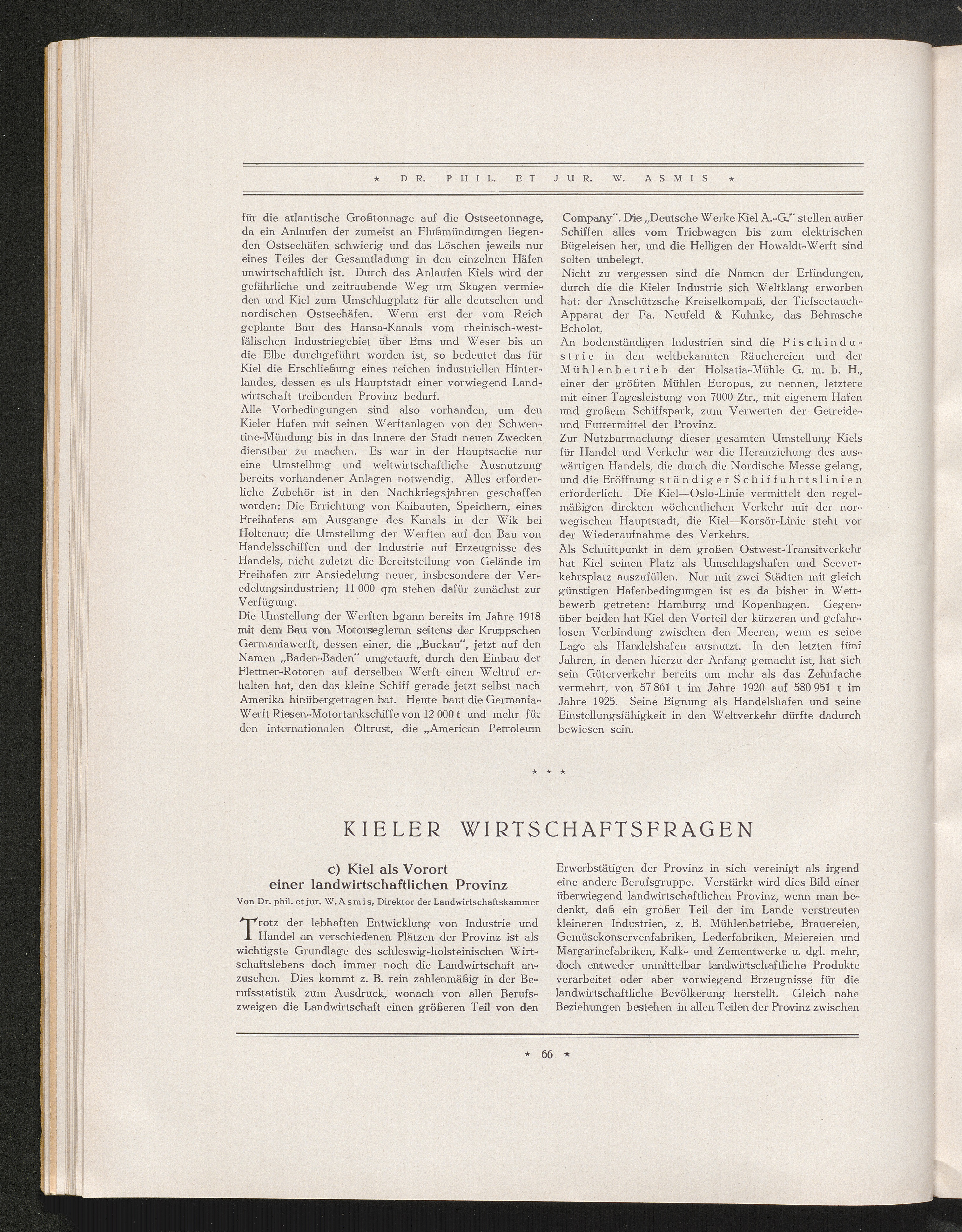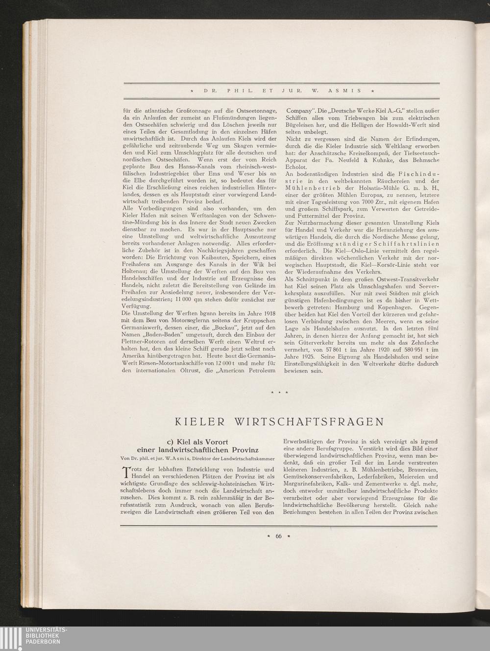 c) Kiel als Vorort einer landwirtschaftlichen Provinz, von Dr. phil. et jur. W. Asmis,[...]