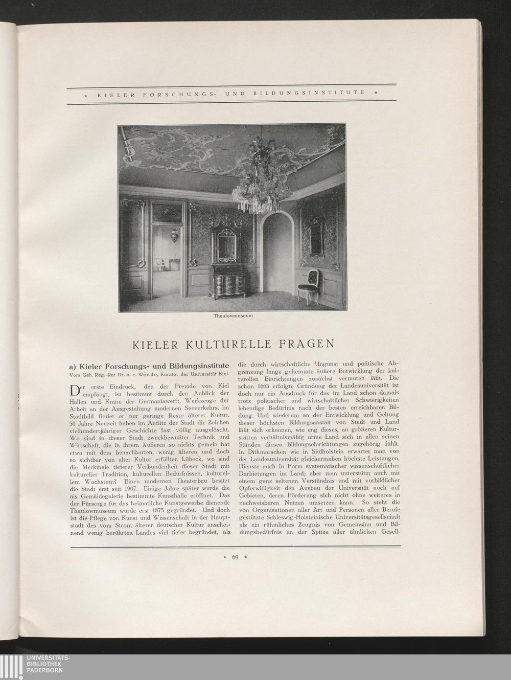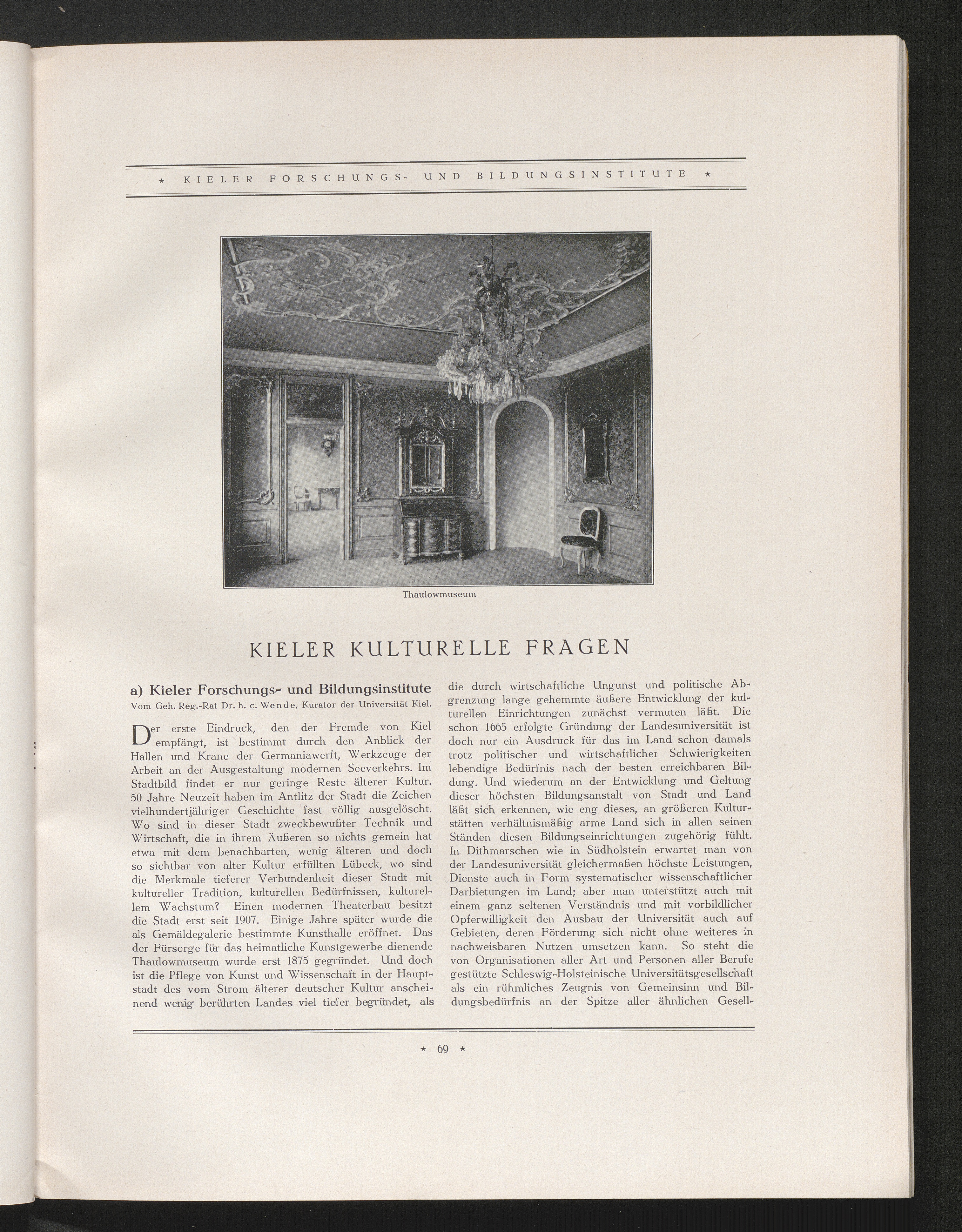 a) Kieler Forschungs- und Bildungsinstitute, von Geh. Reg.-Rat Dr. h. c. Wende, Kurator[...]