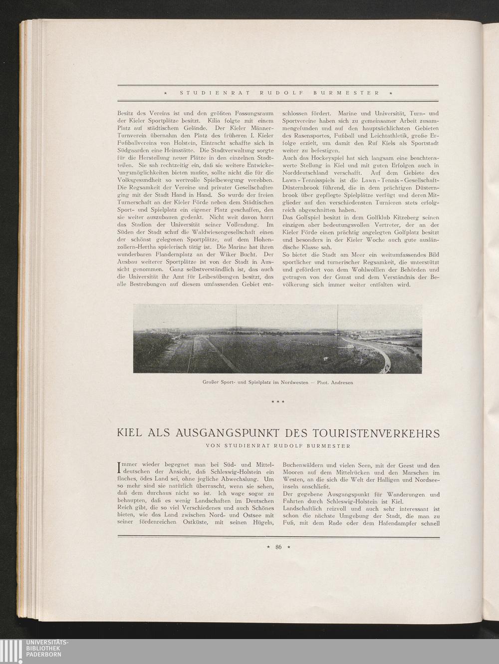 Kiel als Ausgangspunkt des Touristenverkehrs, von Studienrat Rudolf Burmester