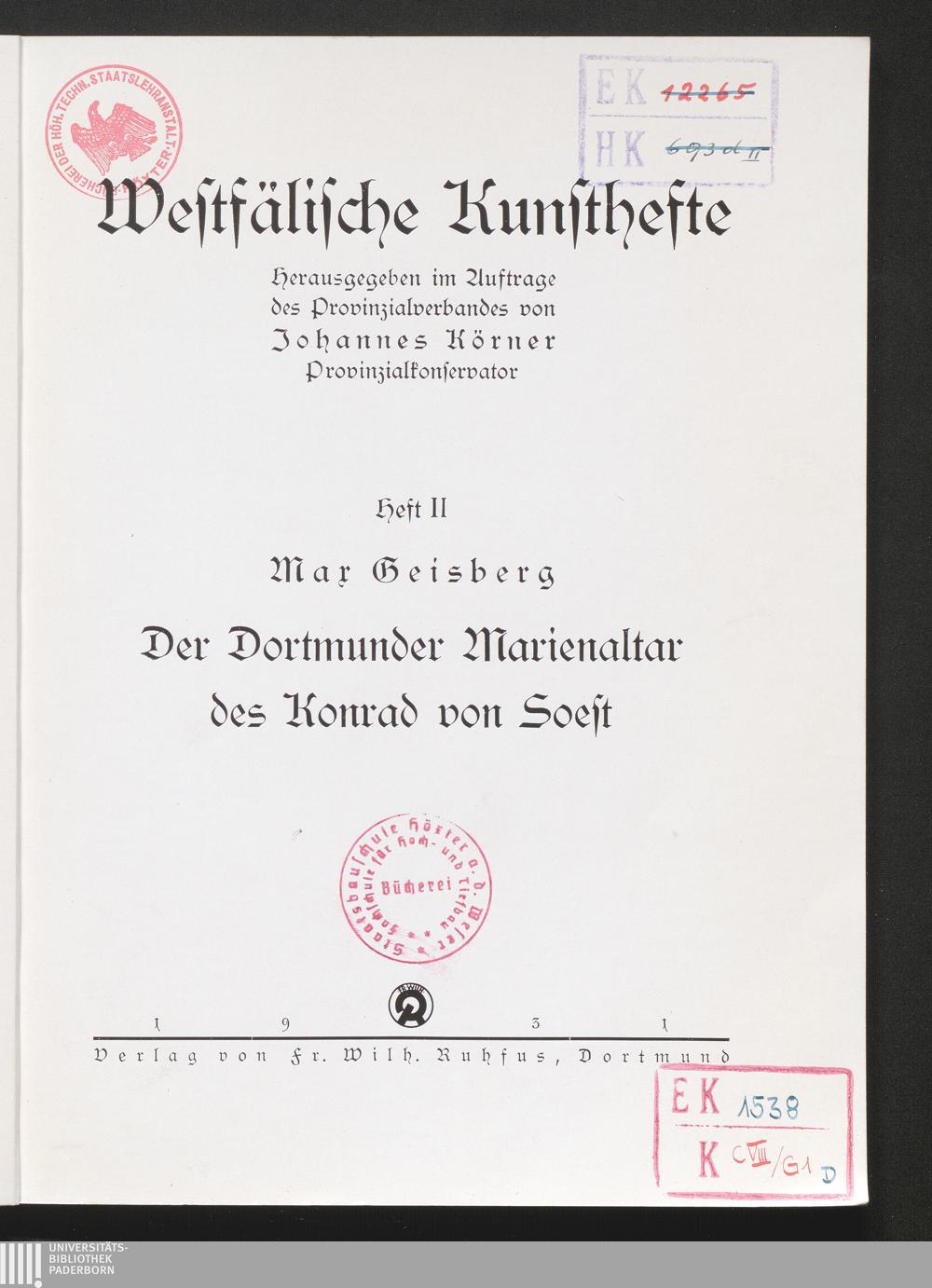 Der Dortmunder Marienaltar des Konrad von Soest / Max Geisberg