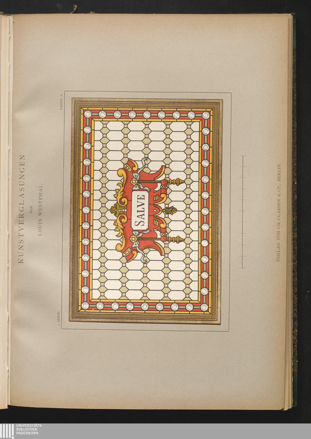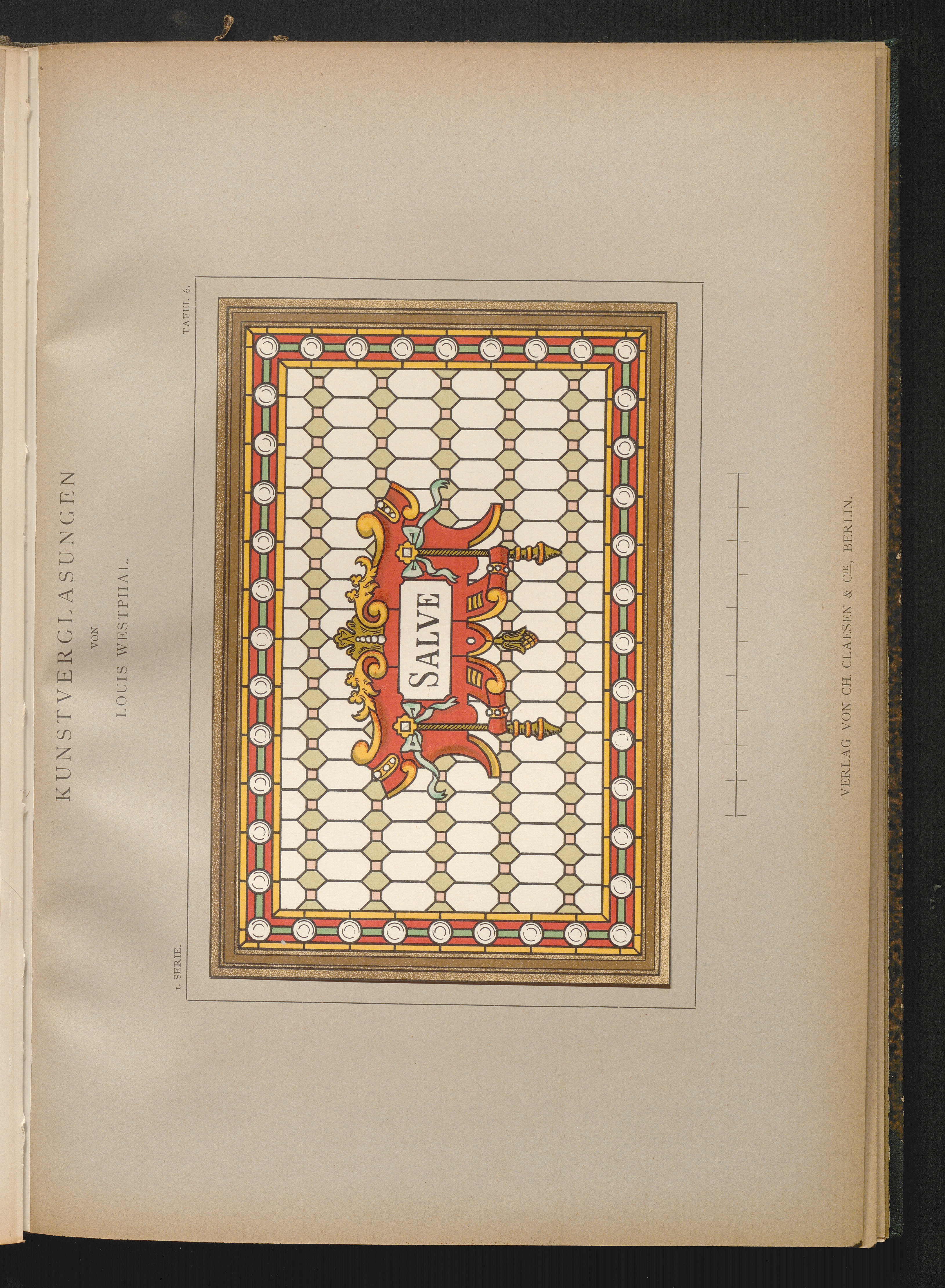 1 (1896) Kunstverglasungen : farbige Entwürfe für Fenster jeder Art ; ein Vorlagenwerk für Architekten, Glaser, Fachschulen und Bibliotheken / von Louis Westphal