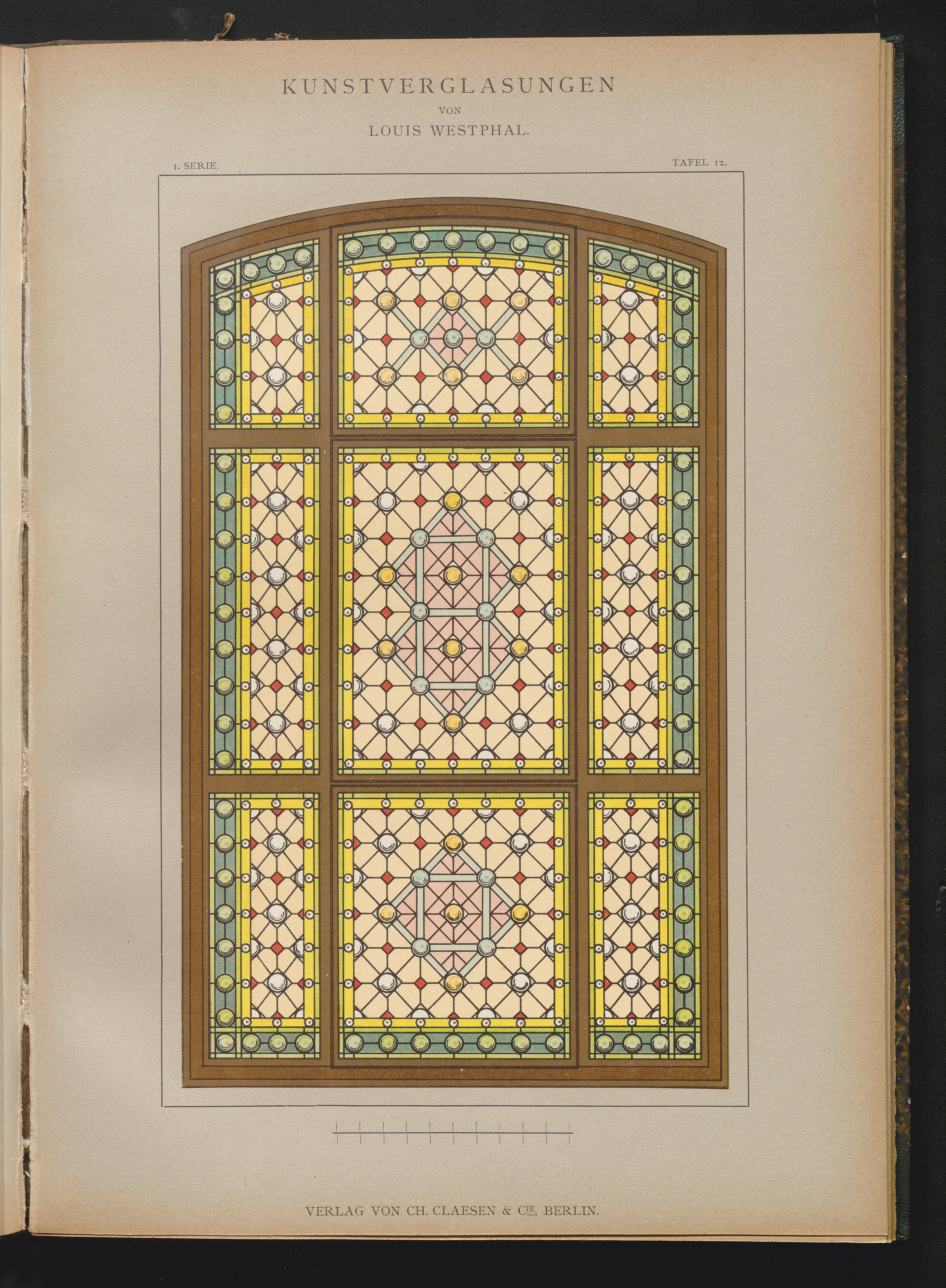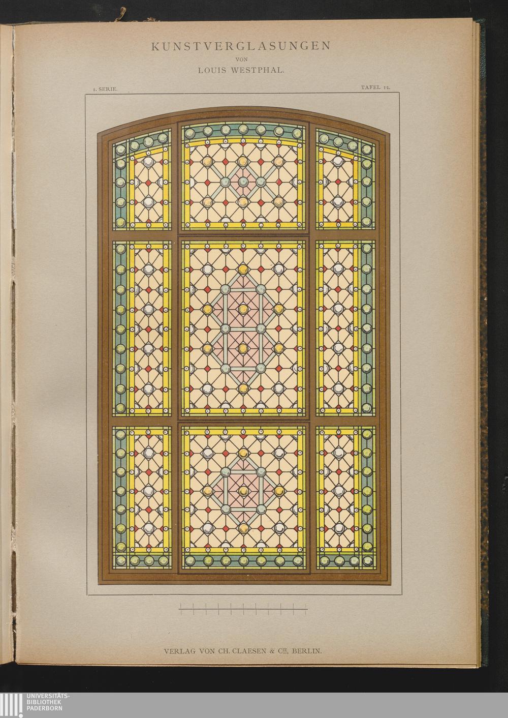 1 (1896) Kunstverglasungen : farbige Entwürfe für Fenster jeder Art ; ein Vorlagenwerk für Architekten, Glaser, Fachschulen und Bibliotheken / von Louis Westphal