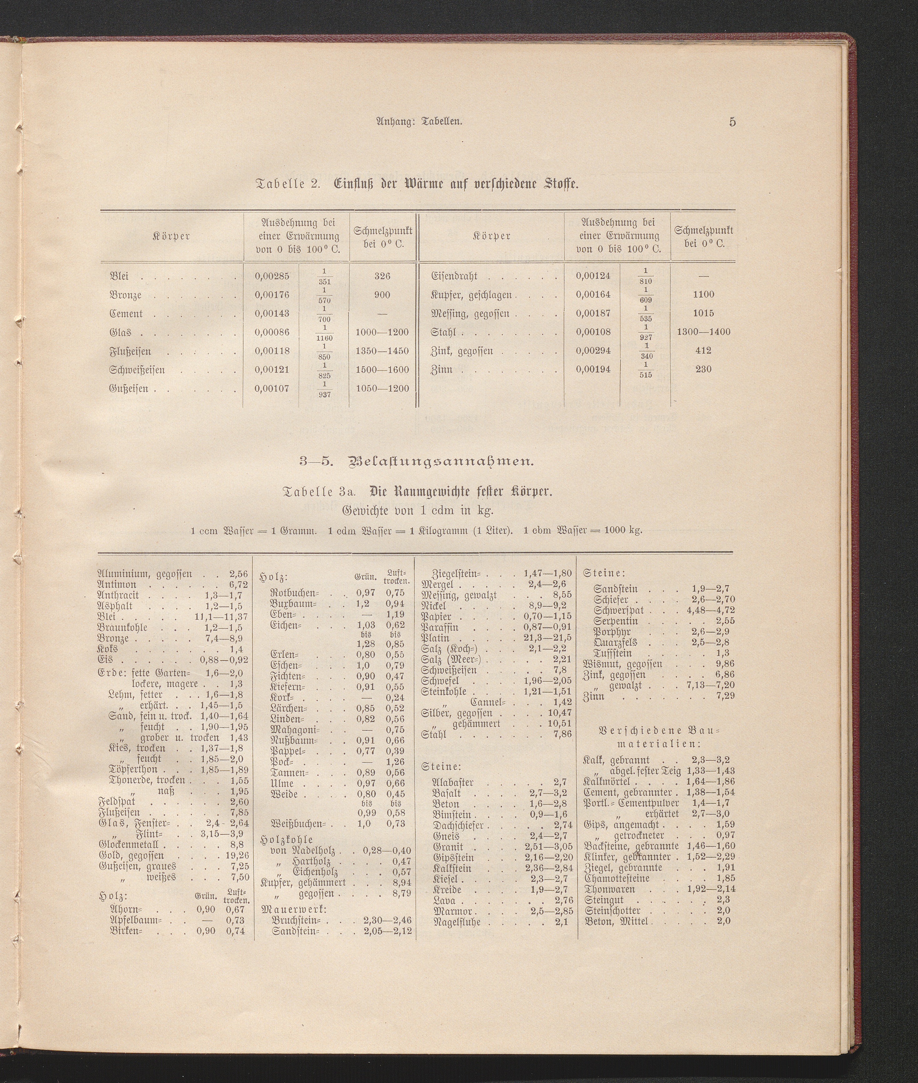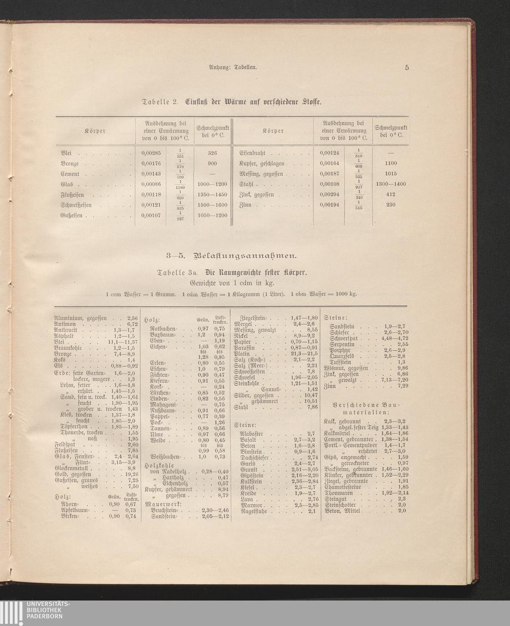 Tabelle 3a. Die Raumgewichte fester Körper