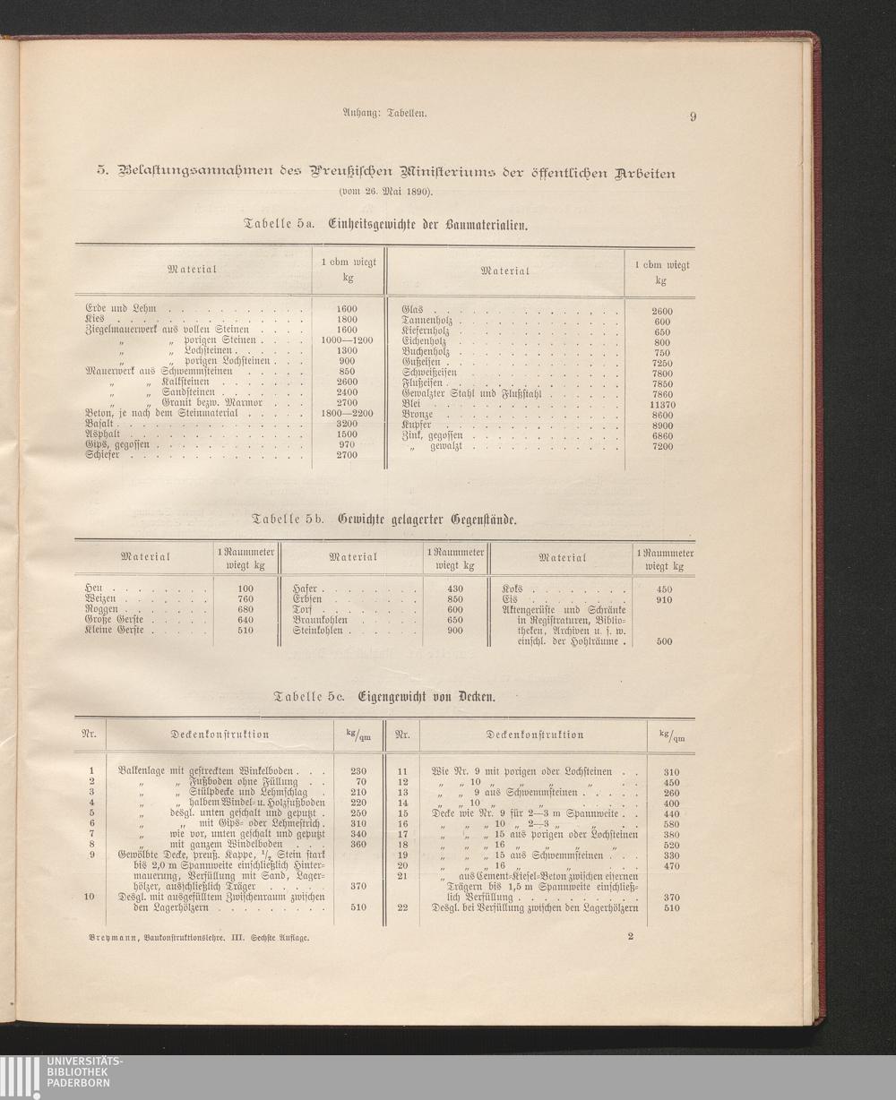 5. Belastungsannahmen des Preußischen Ministeriums der öffentlichen Arbeiten (vom[...]