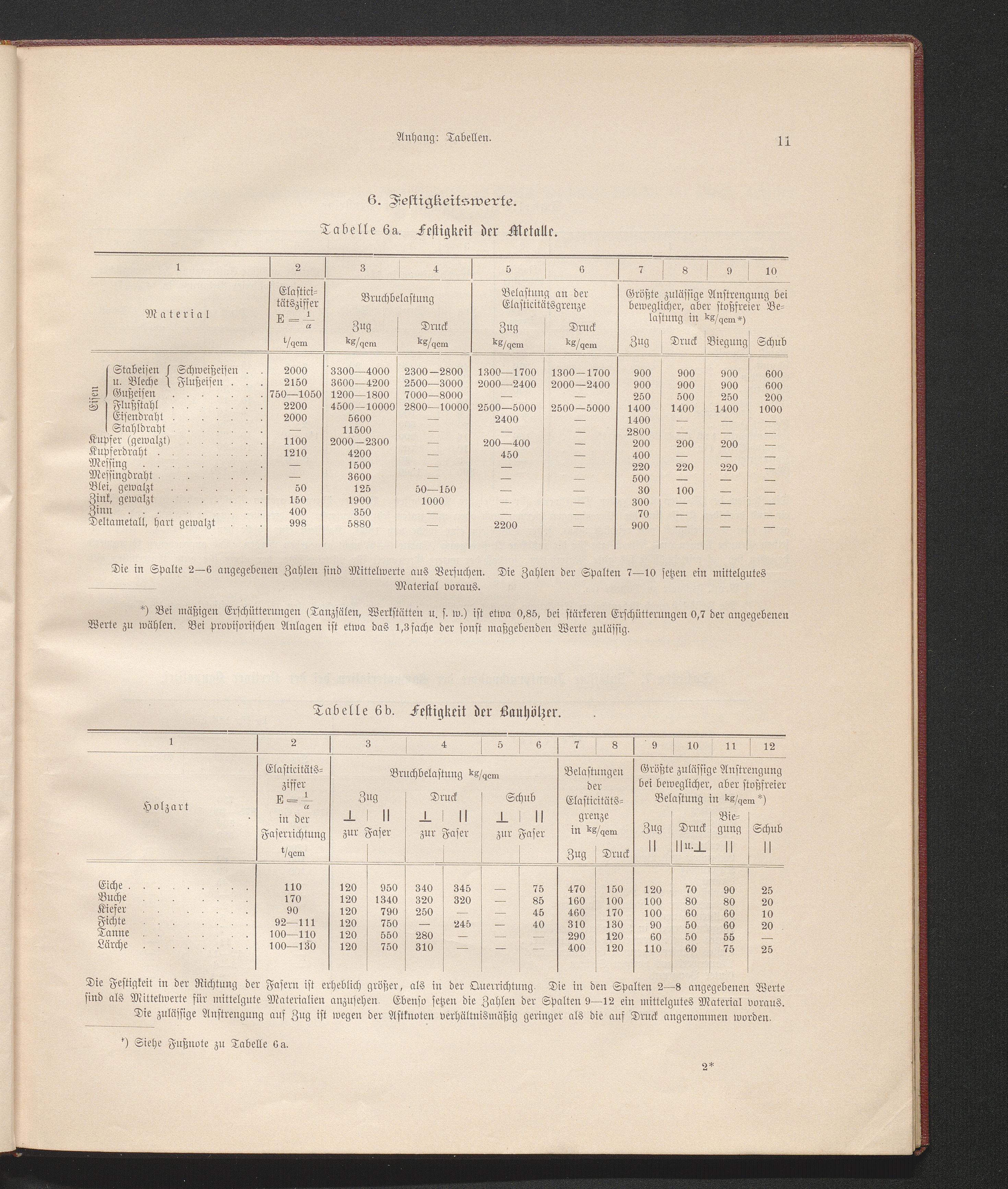 Tabelle 6b. Festigkeit der Bauhölzer