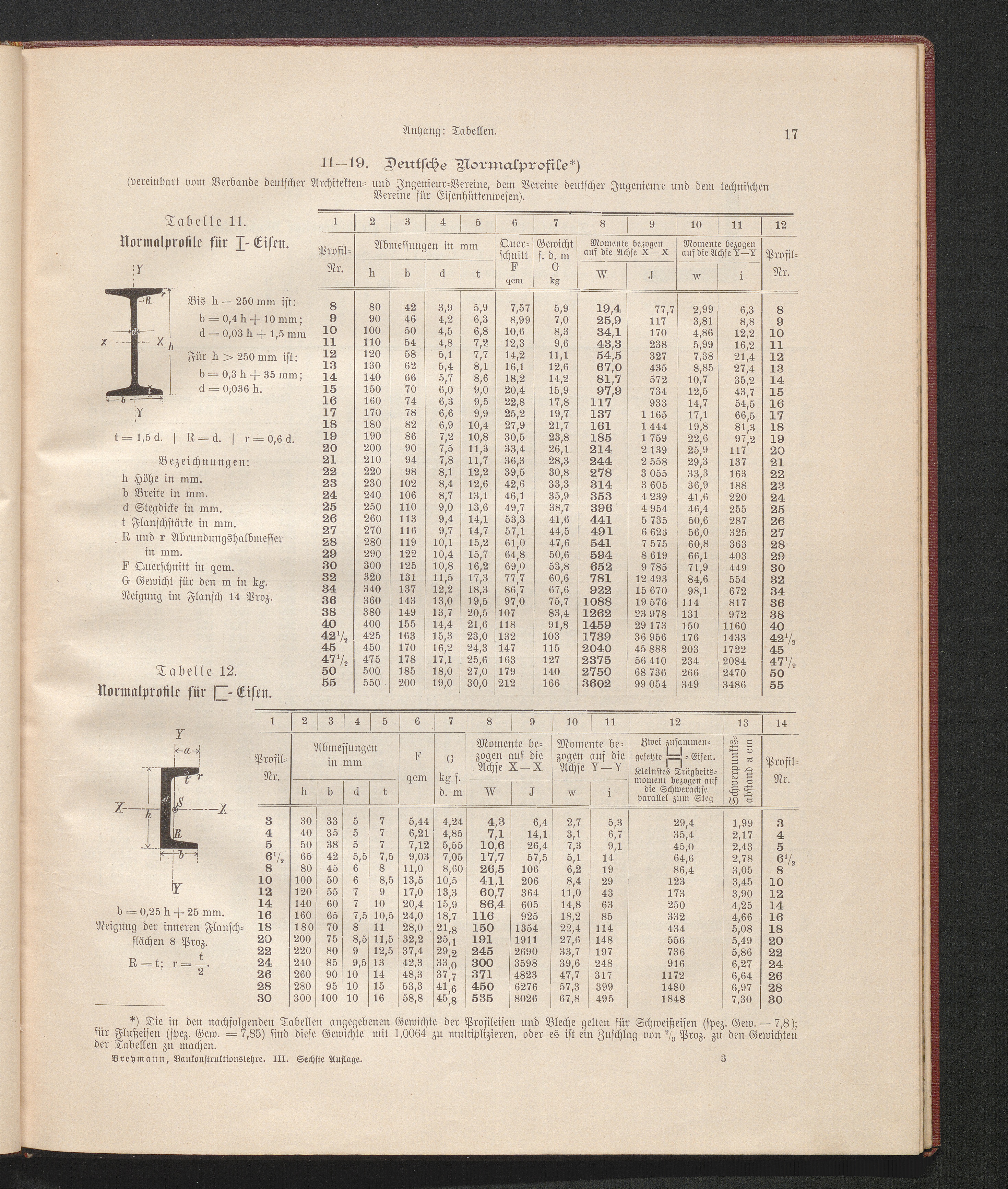 Tabelle 12. Normalprofile für ?-Eisen