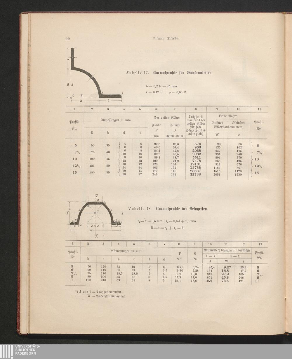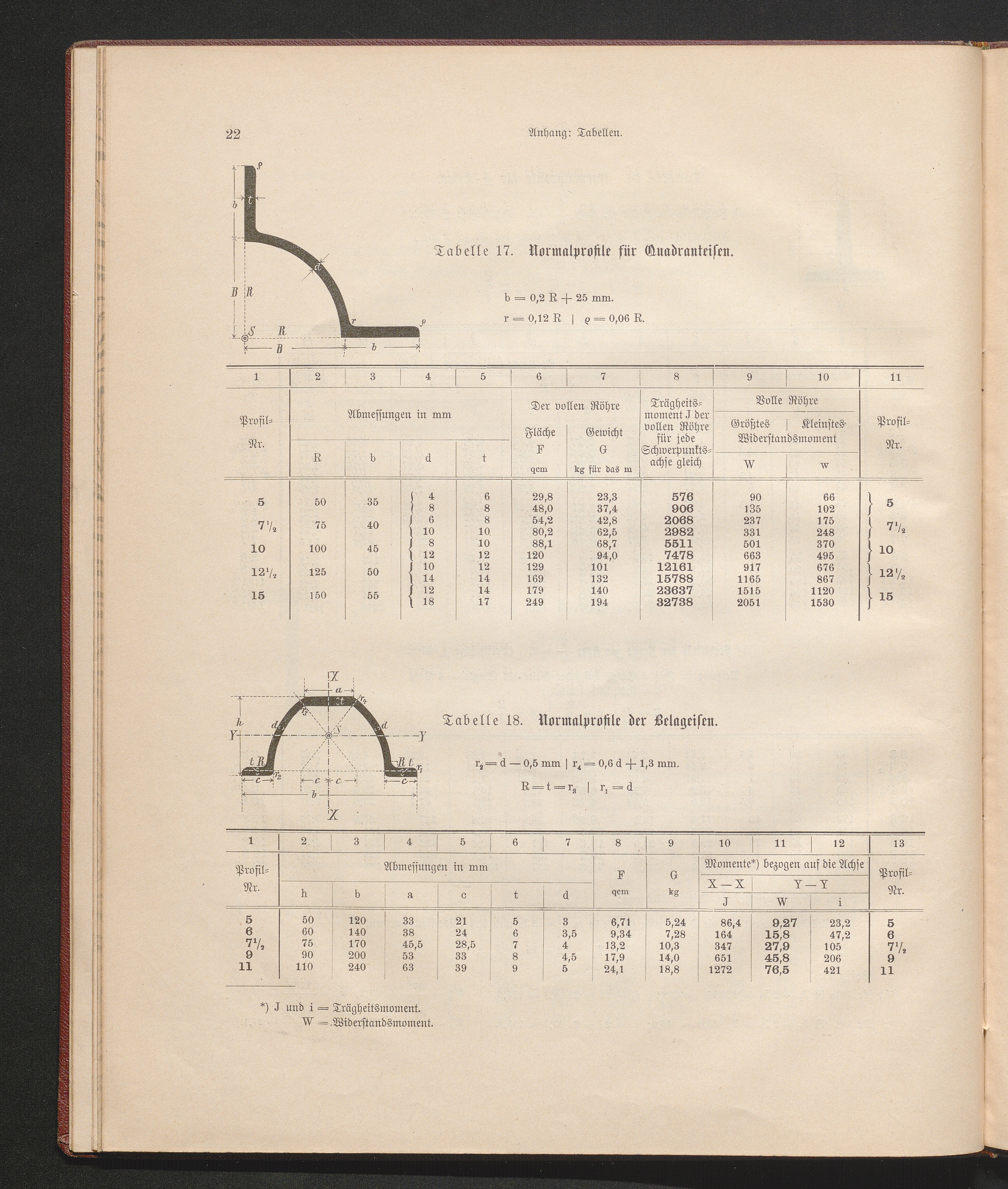 Tabelle 18. Normalprofile der Belageisen