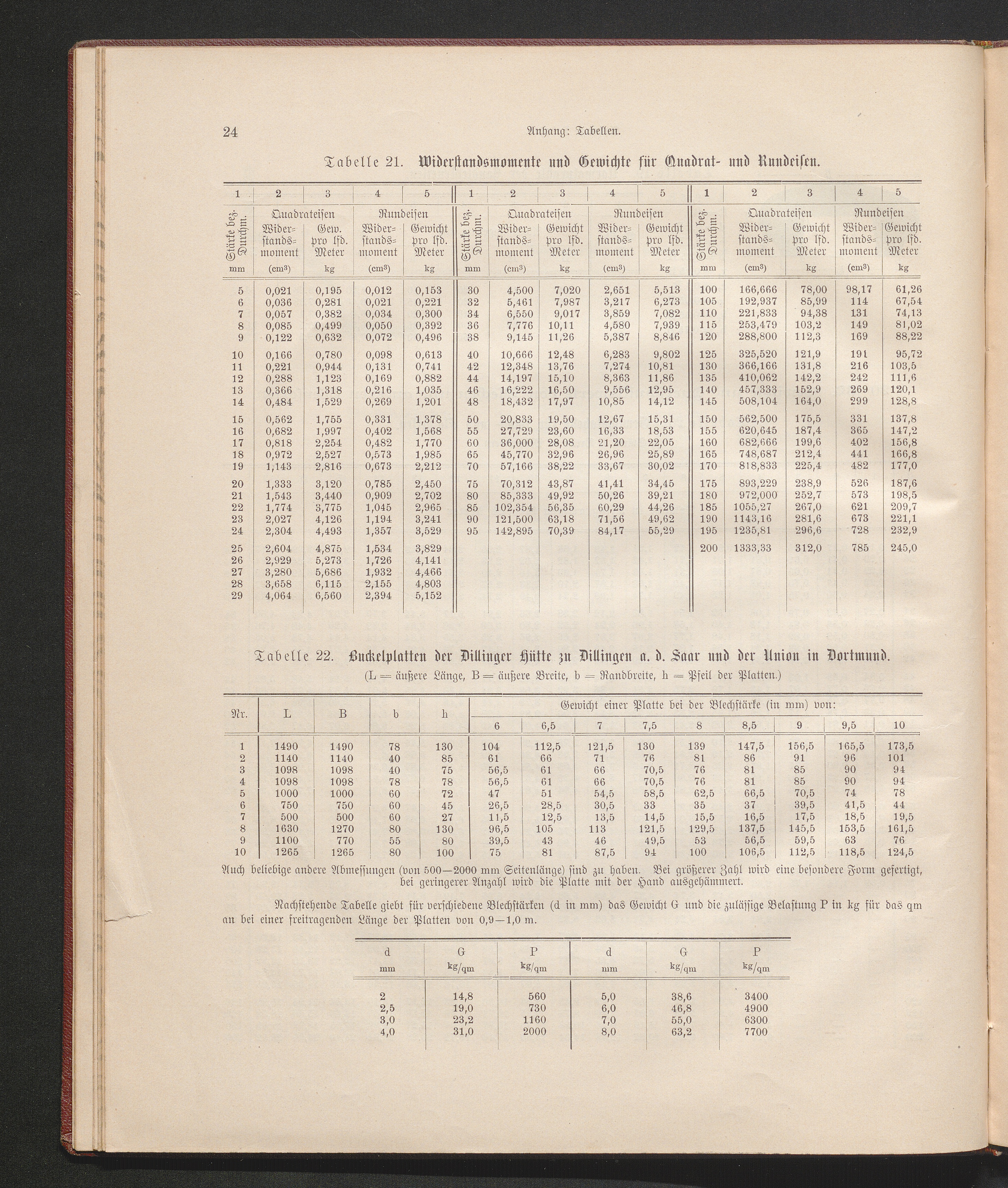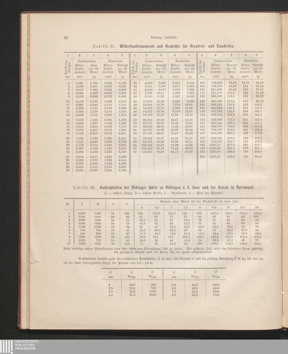 Tabelle 22. Buckelplatten der Dillinger Hütte zu Dillingen a. d. Saar und der Union[...]