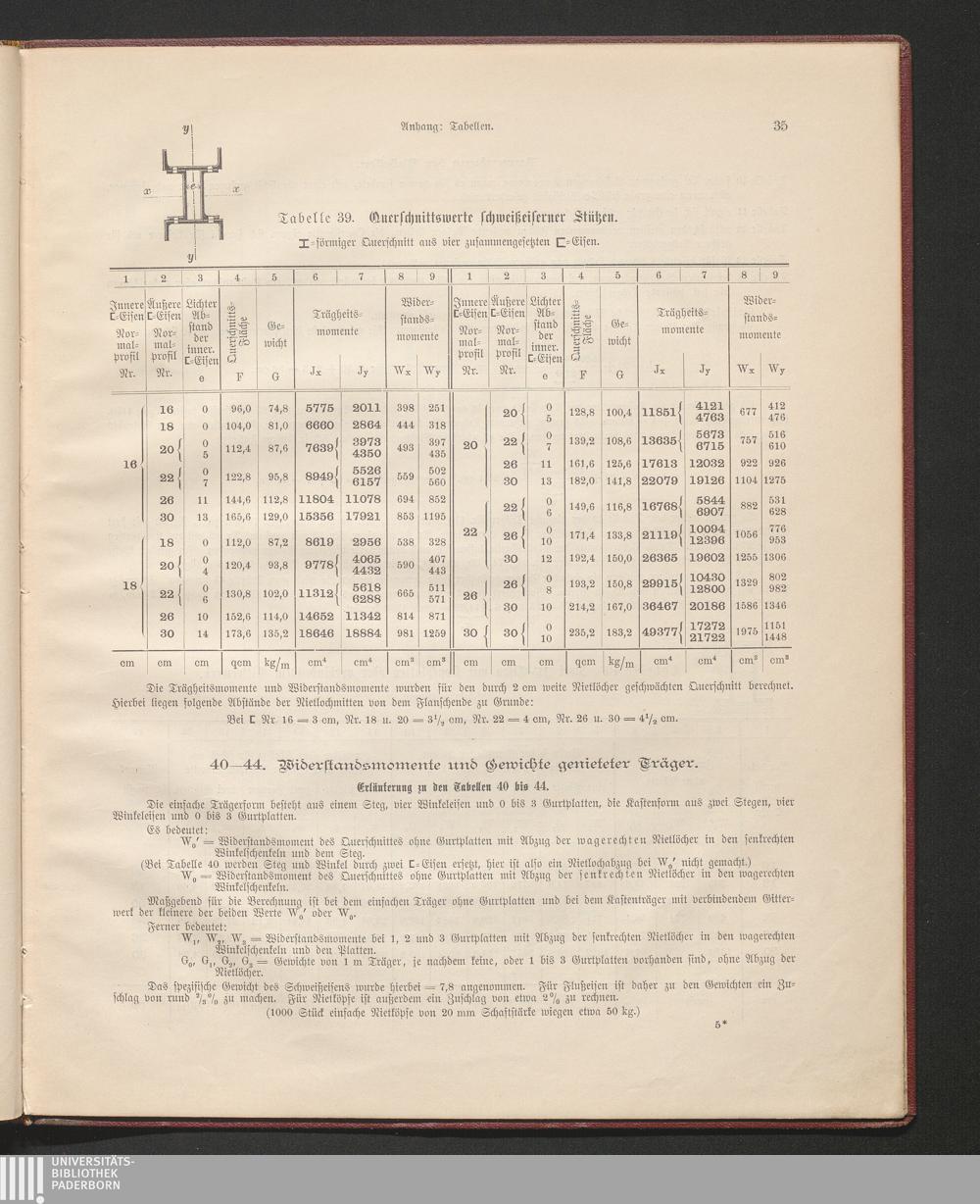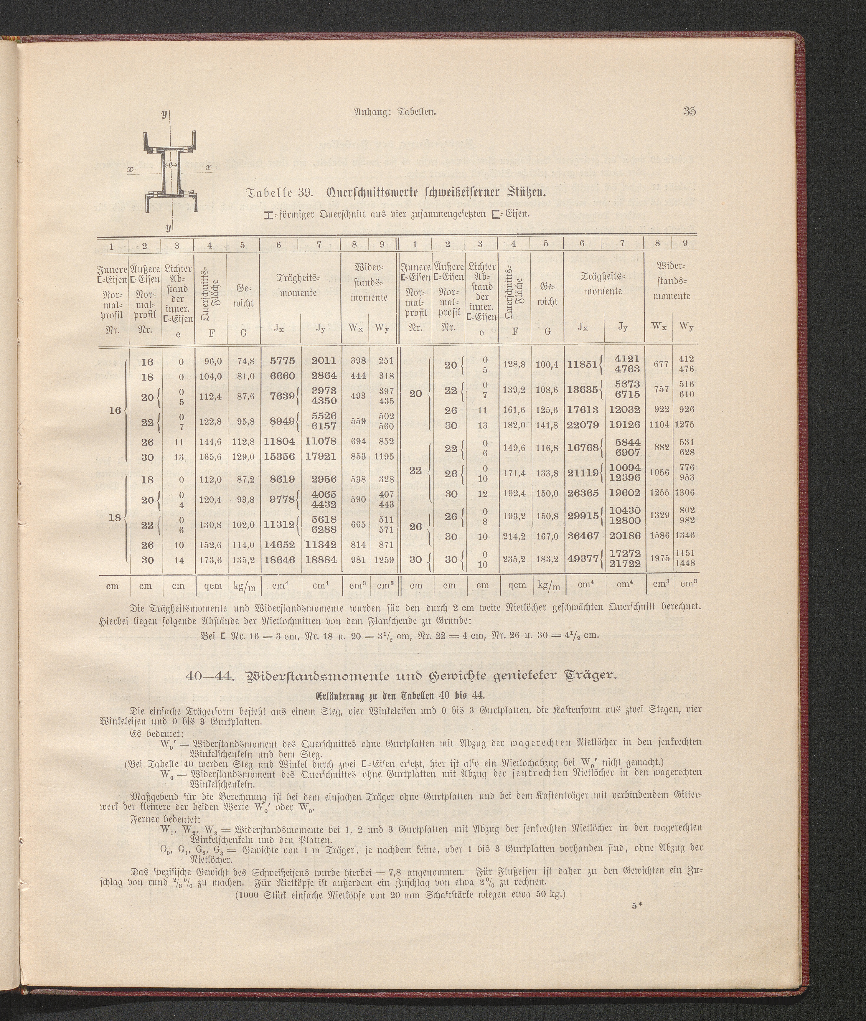 40-44. Widerstandmomente und Gewichte genieteter Träger.