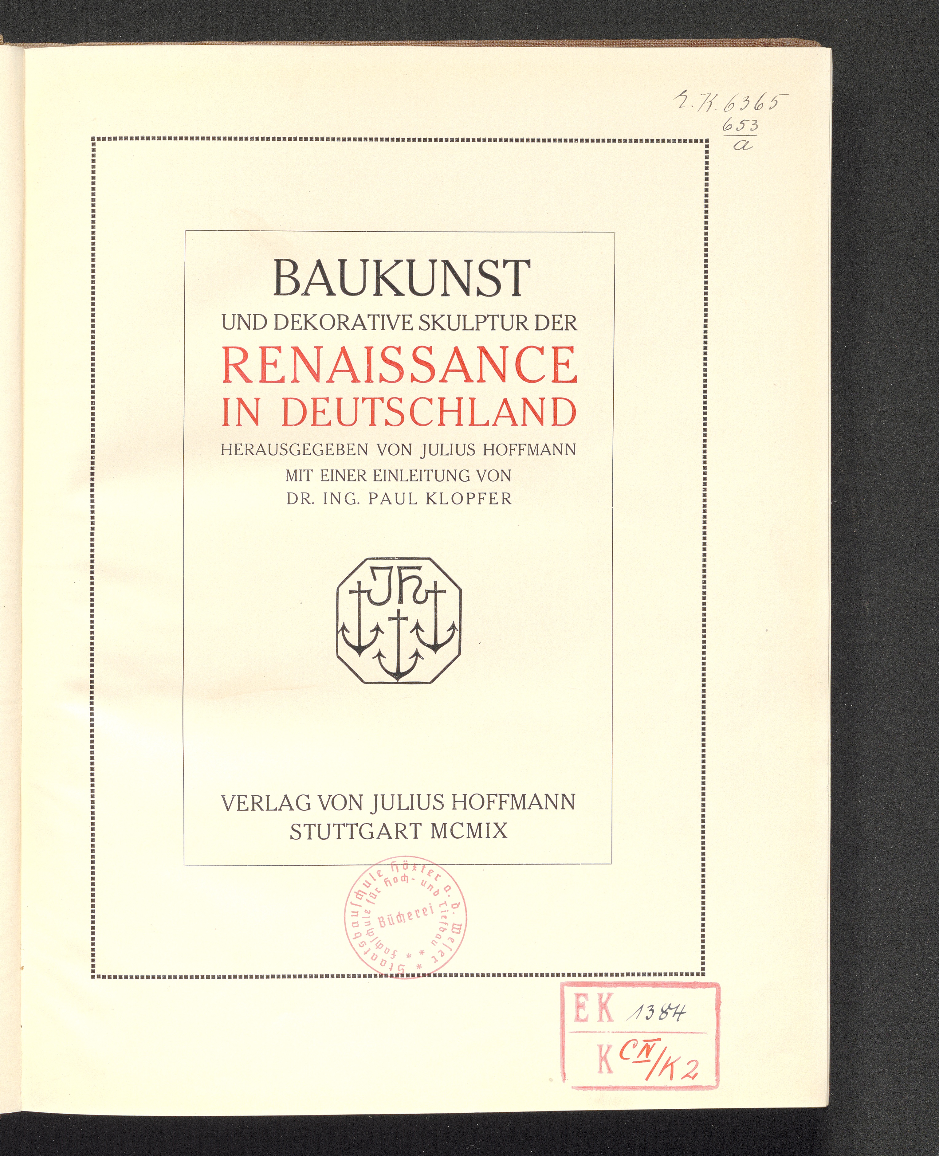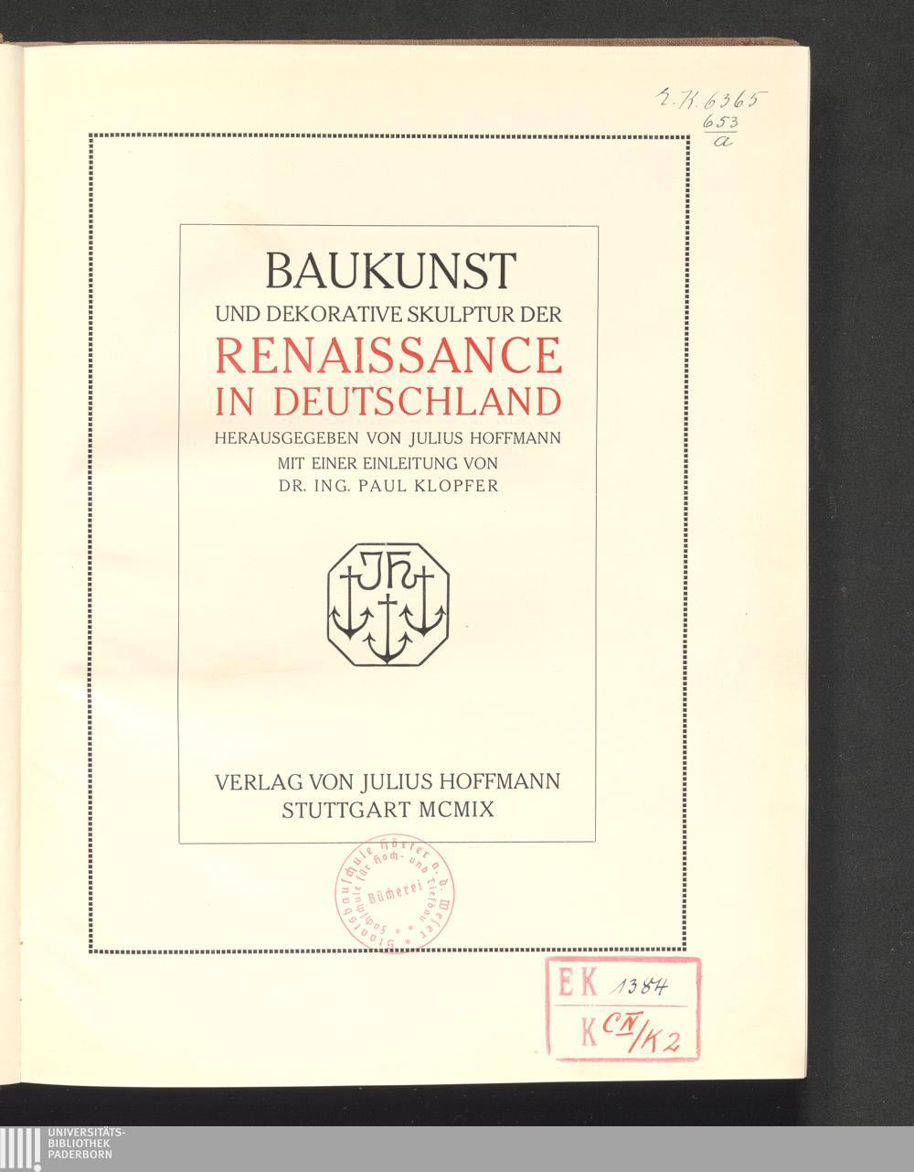 Baukunst und dekorative Skulptur der Renaissance in Deutschland / hrsg. von Julius Hoffmann