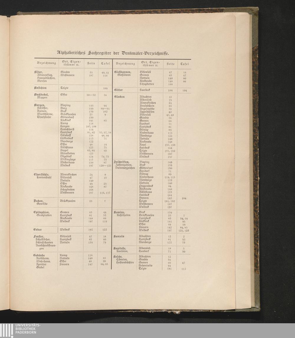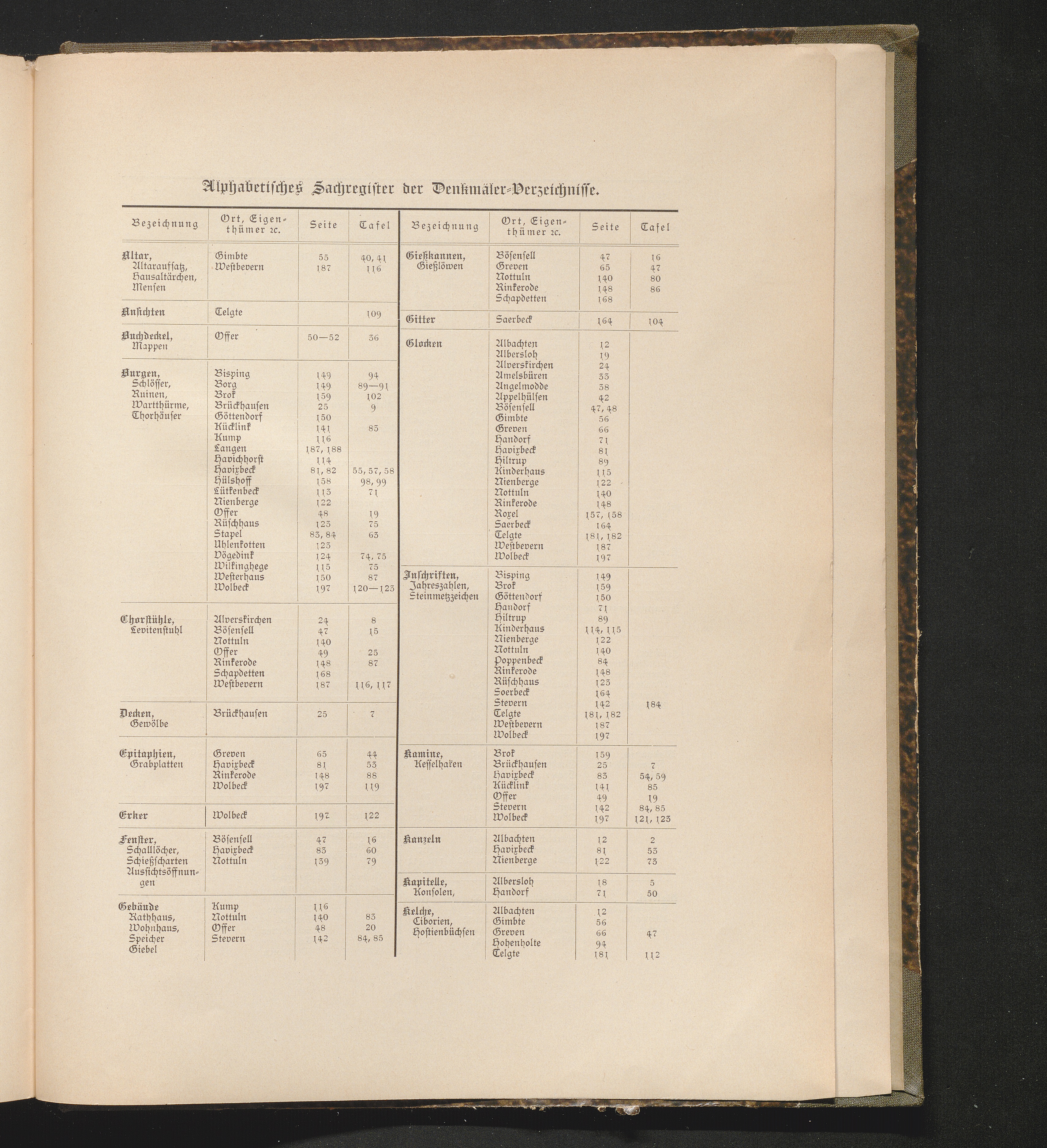 Alphabetisches Sachregister der Denkmäler-Verzeichnisse.