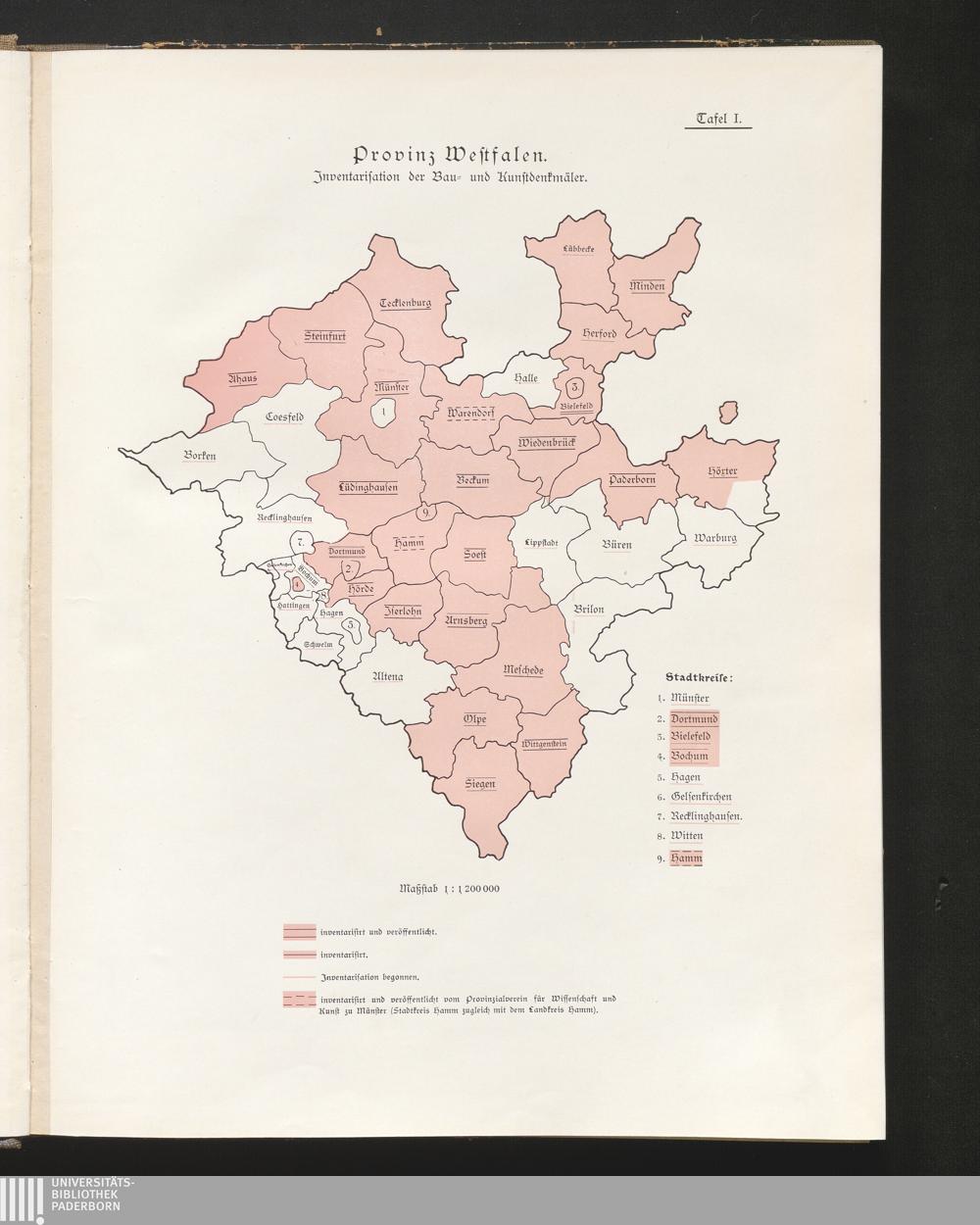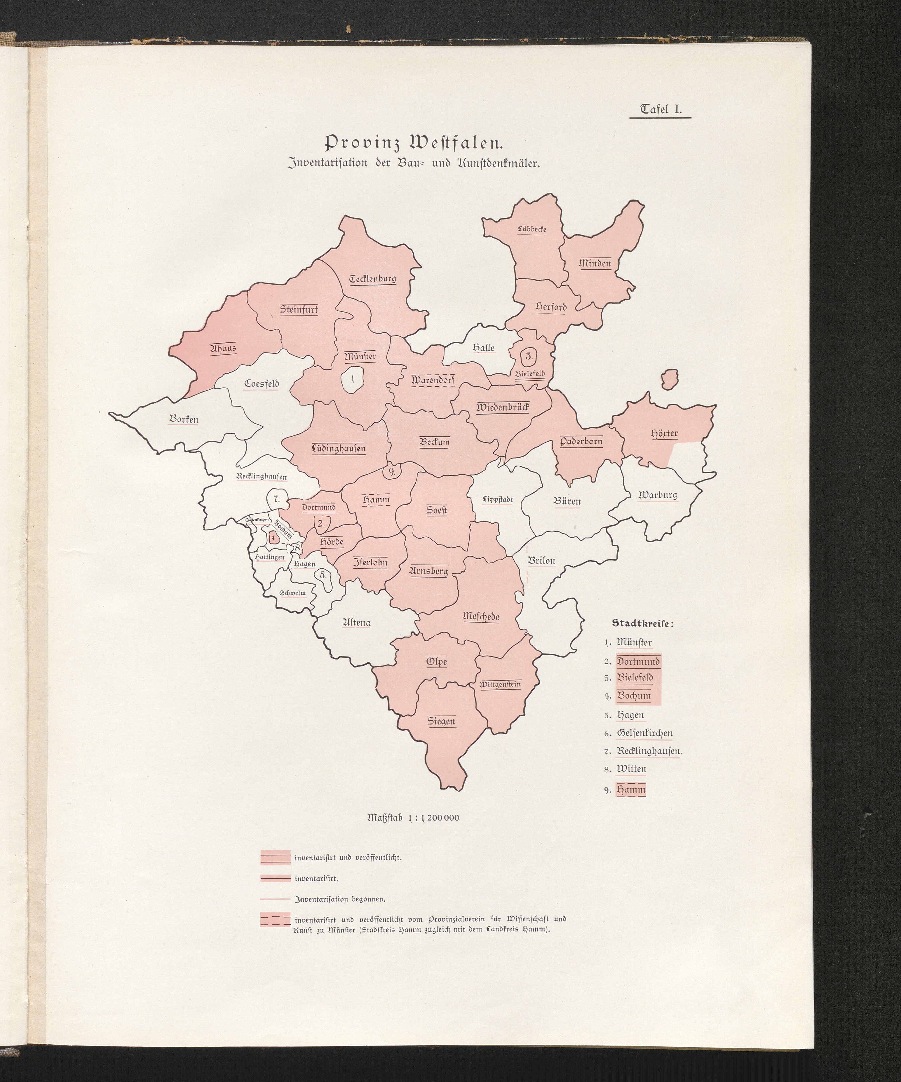 Tafel I Karte der Provinz Westfalen (Stand der Jnventarisationsarbeiten)