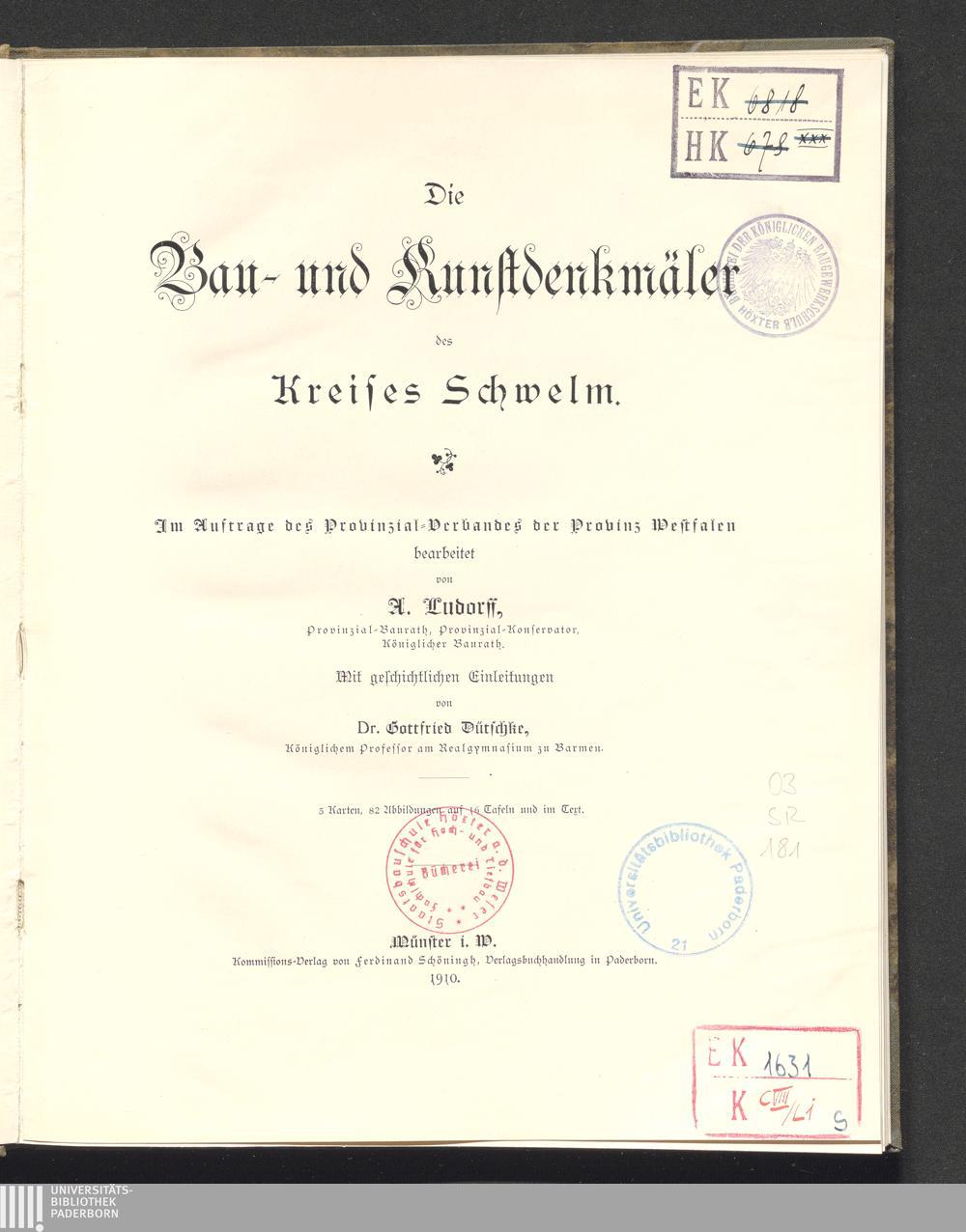 Die Bau- und Kunstdenkmäler des Kreises Schwelm