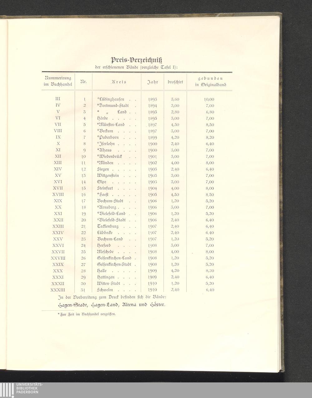 Karte der Provinz Westfalen (Stand der Jnventarisationsarbeiten)