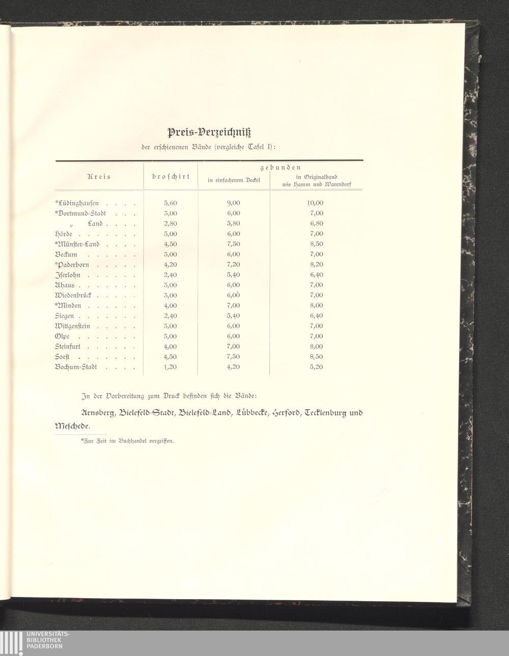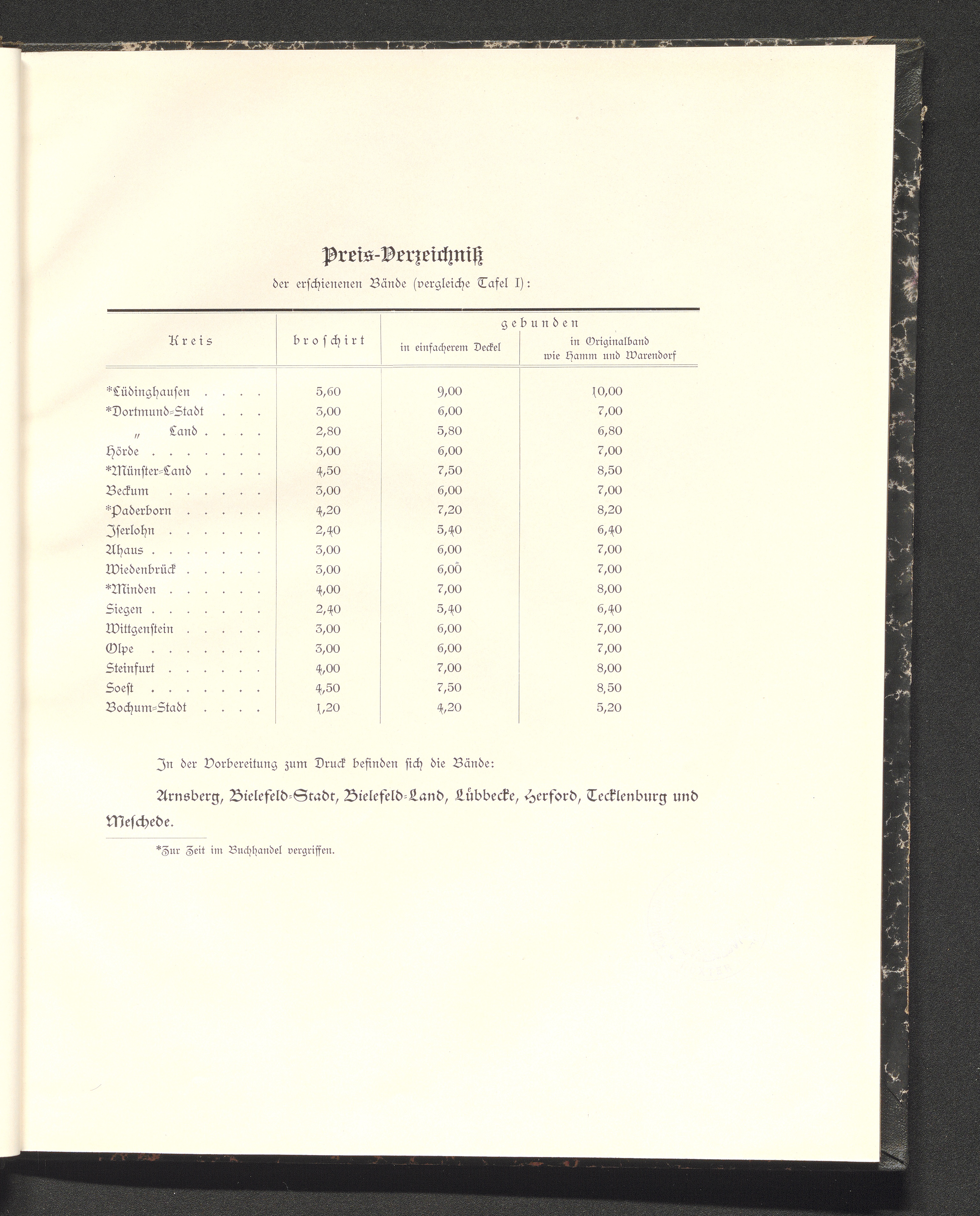 Karte der Provinz Westfalen (Stand der Jnventarisationsarbeiten)