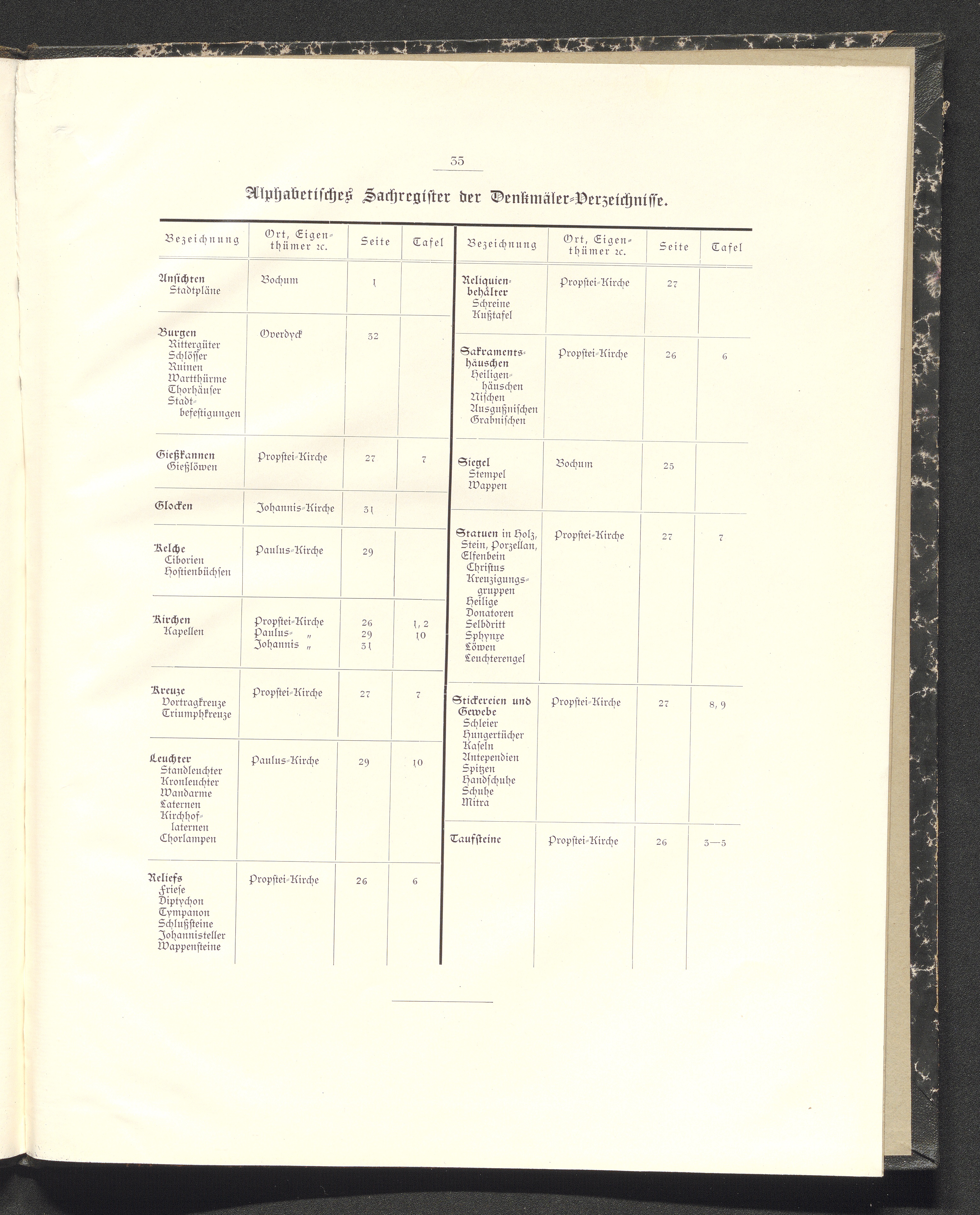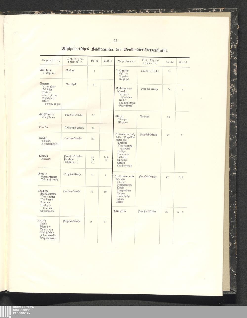 Alphabetisches Sachregister der Denkmäler-Verzeichnisse.