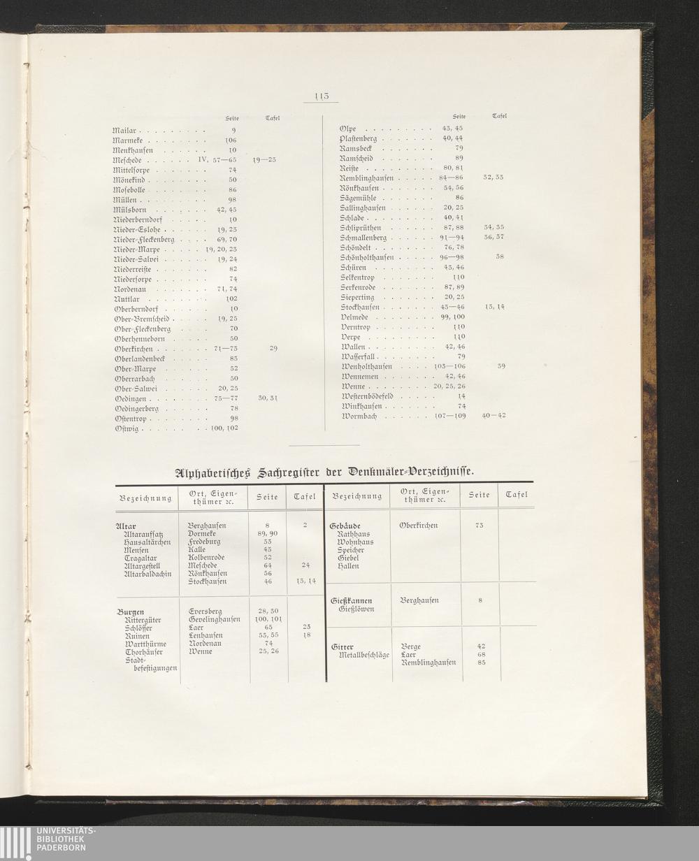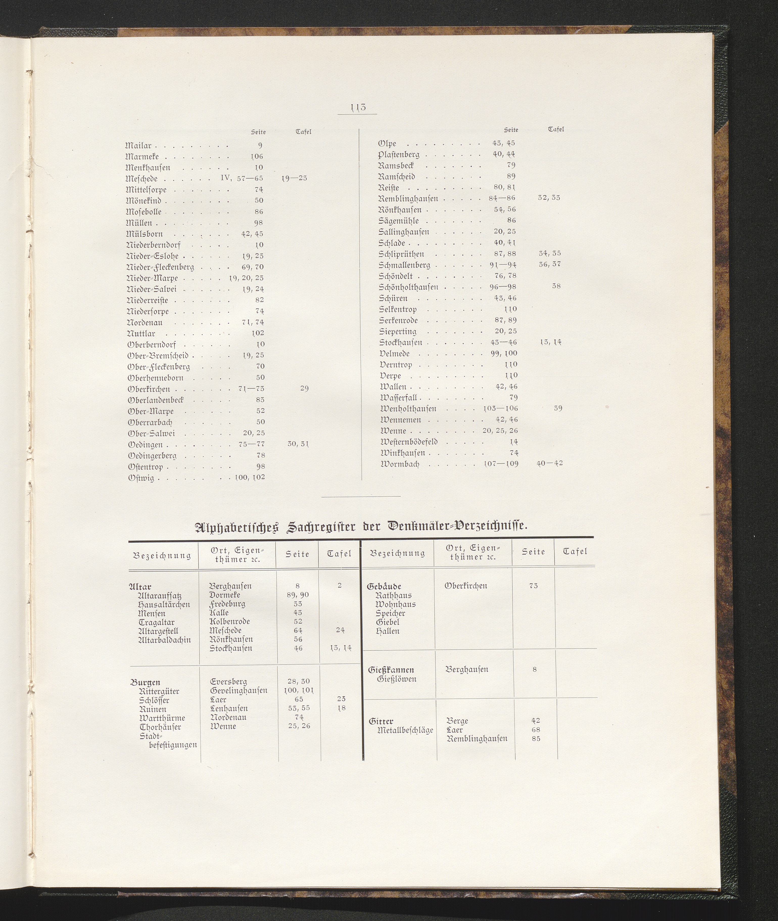 Alphabetisches Sachregister der Denkmäler-Verzeichnisse.