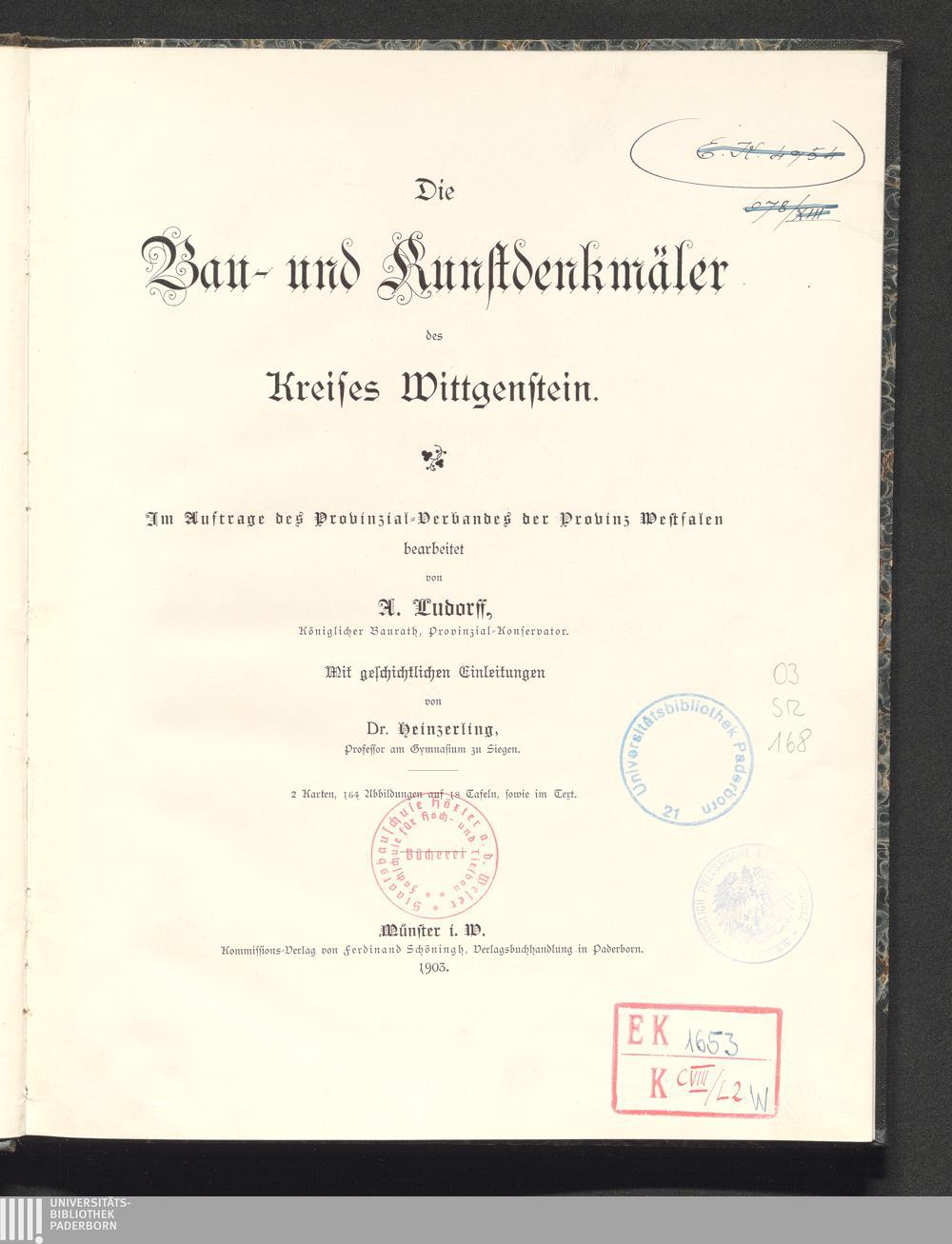 Die Bau- und Kunstdenkmäler des Kreises Wittgenstein / bearb. von A. Ludorff