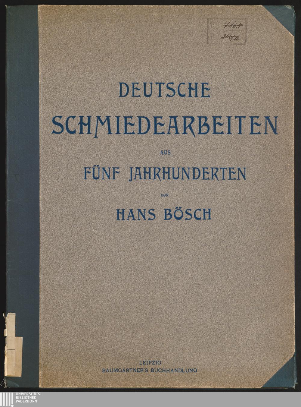 Deutsche Schmiedearbeiten aus fünf Jahrhunderten : 50 Tafeln in Lichtdruck nach photographischen Originalaufnahmen / herausgegeben von Hans Bösch