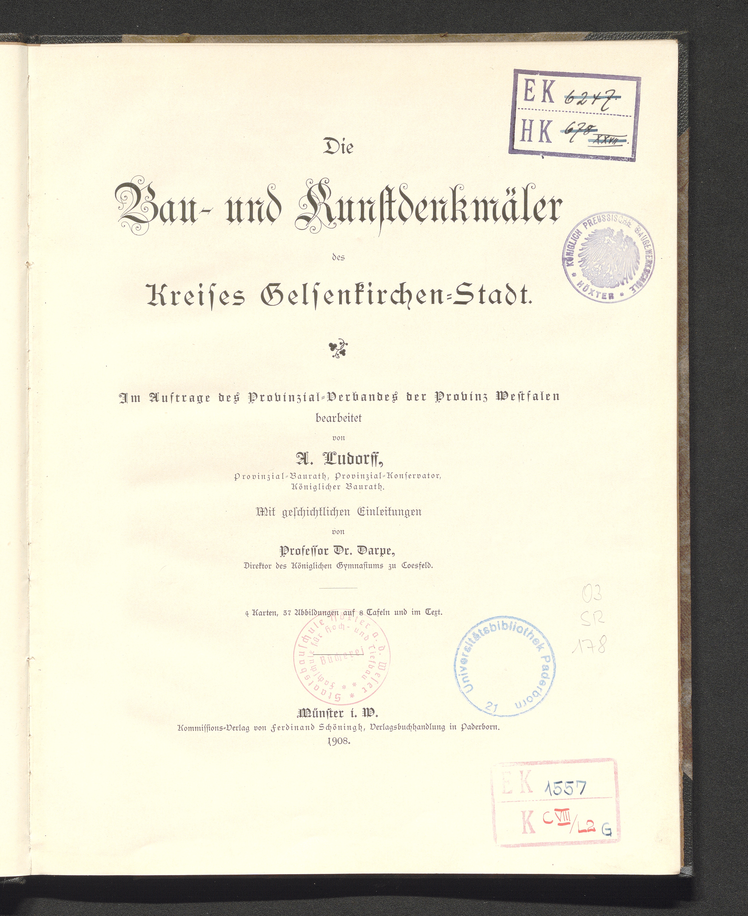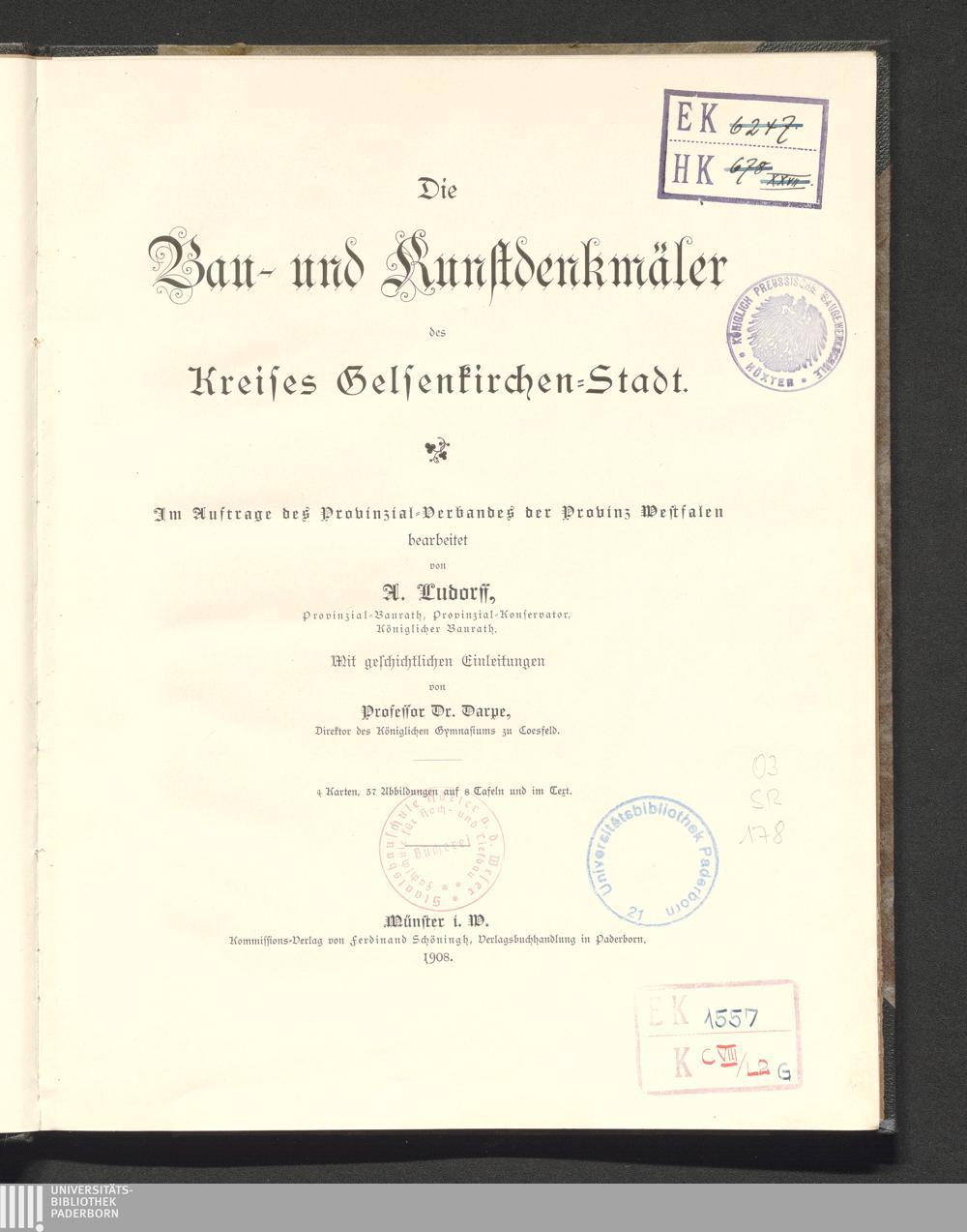 Die Bau- und Kunstdenkmäler des Kreises Gelsenkirchen-Stadt / bearb. von A. Ludorff. Mit geschichtl. Einl. von Darpe