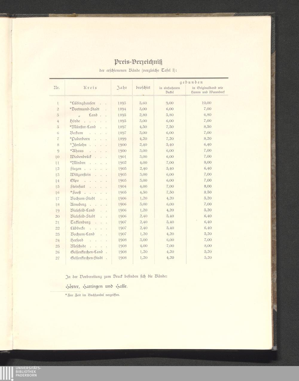 Karte der Provinz Westfalen (Stand der Inventarisationsarbeiten)