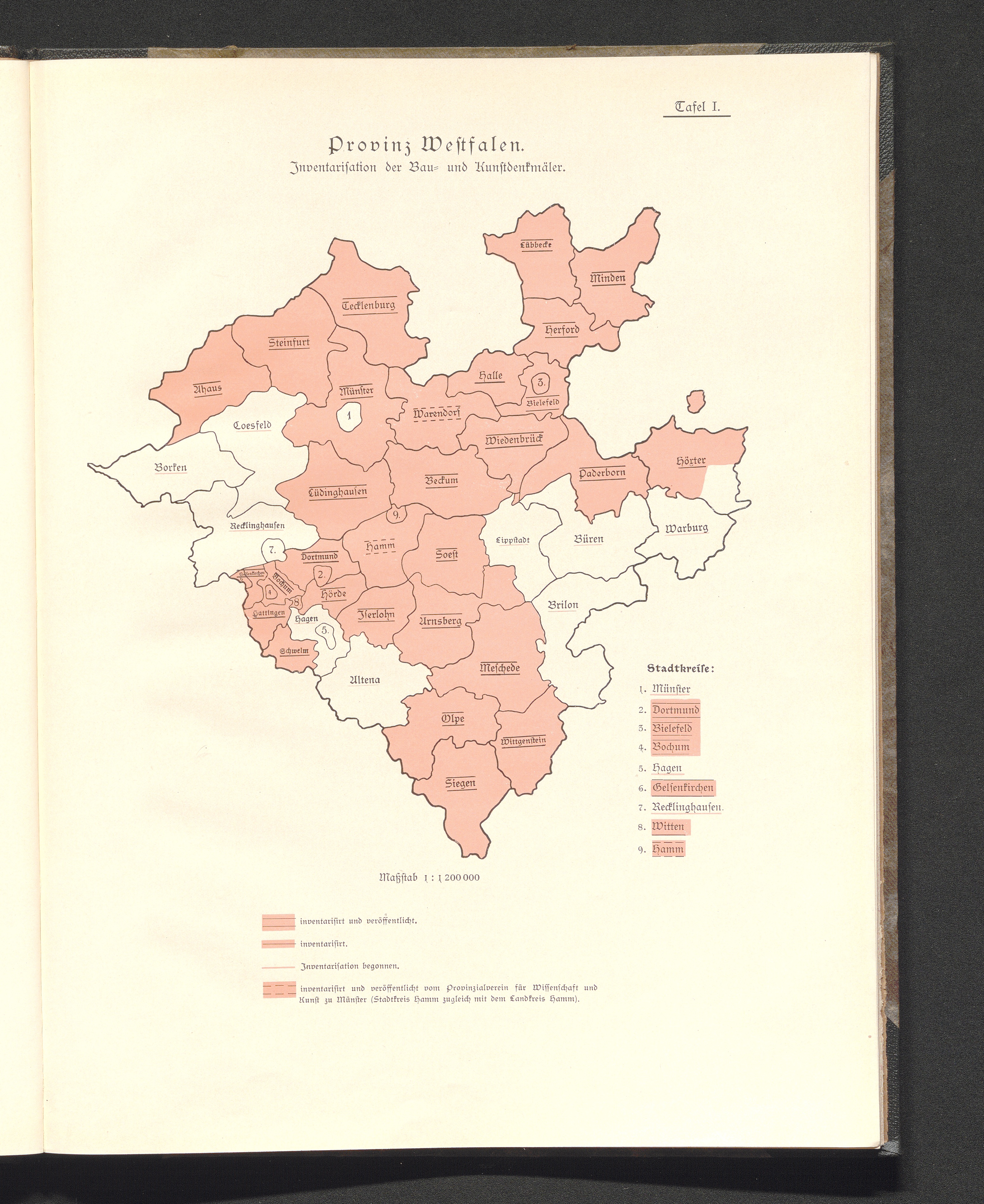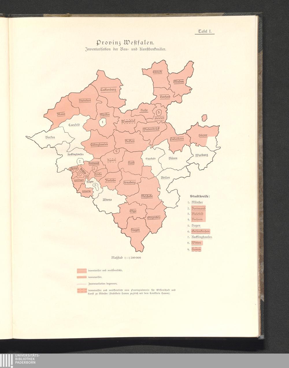 Karte der Provinz Westfalen (Stand der Inventarisationsarbeiten)