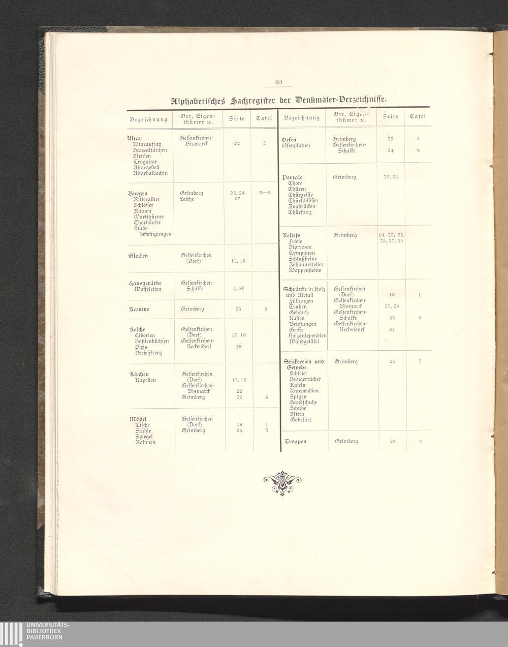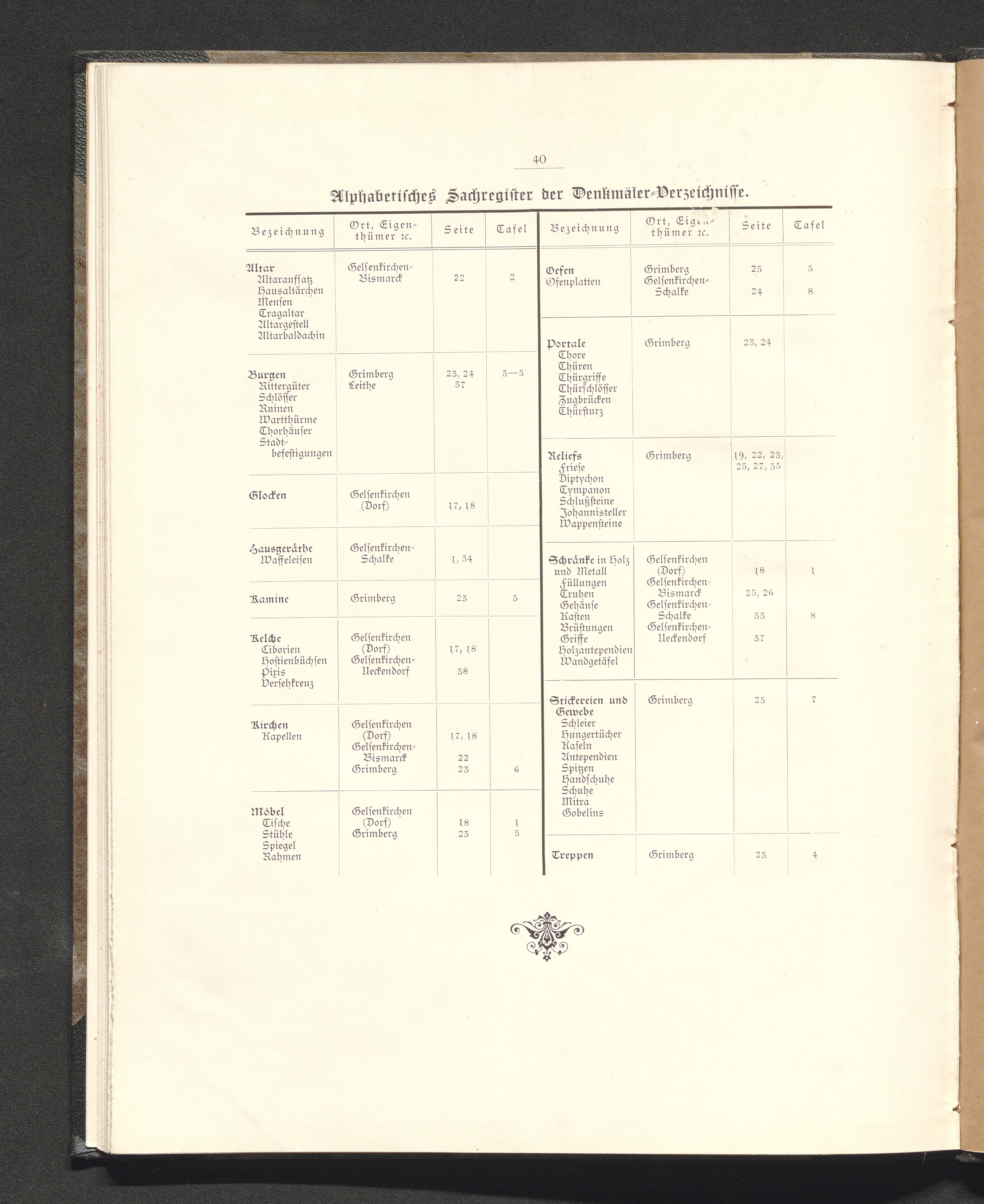 Alphabetisches Sachregister der Denkmäler-Verzeichnisse.