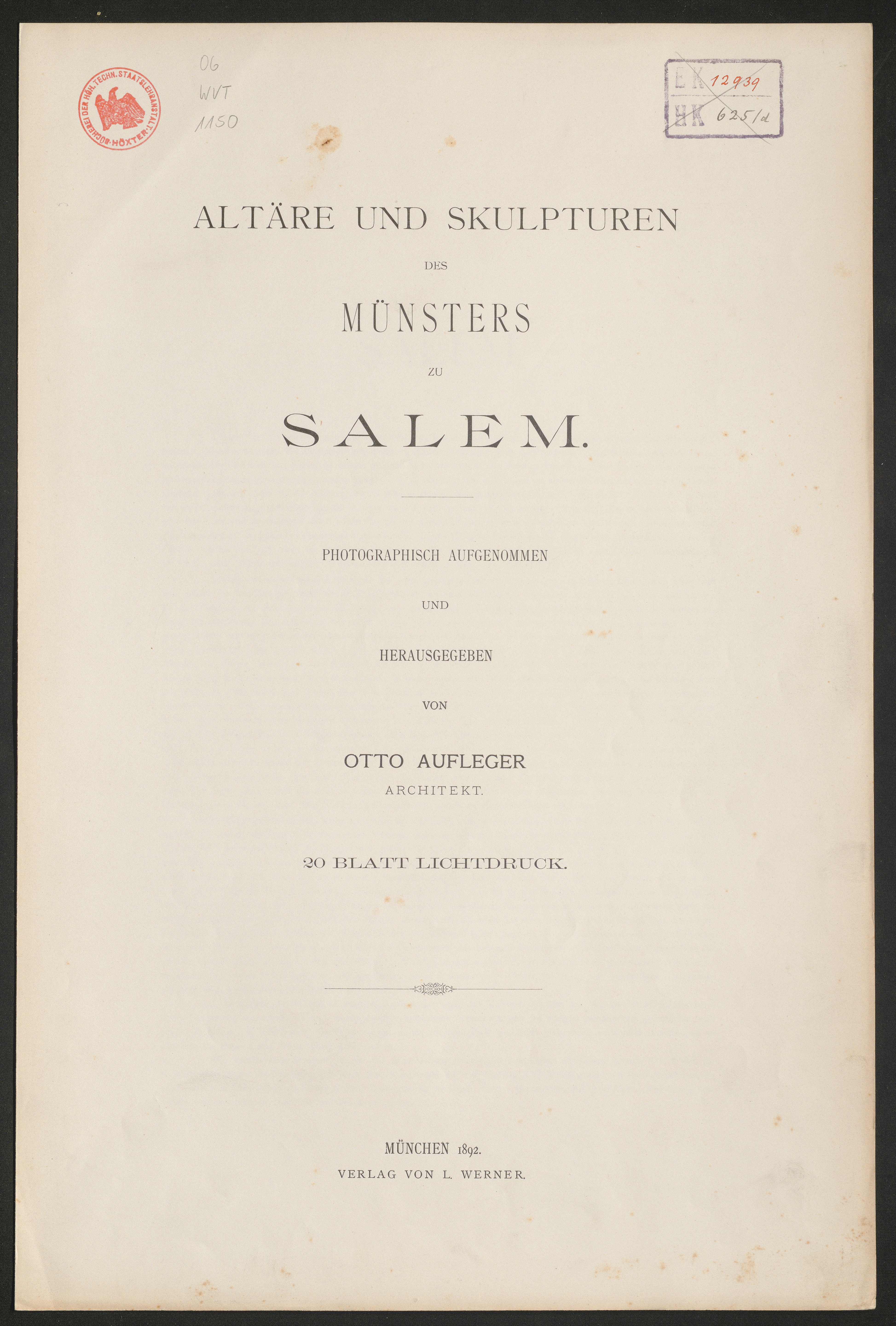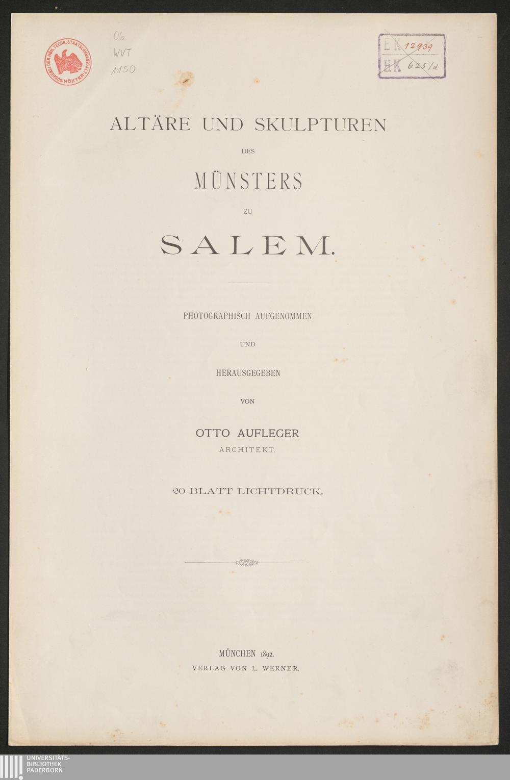 Altäre und Skulpturen des Münsters zu Salem / photograph. aufgenommen u. hrsg. von Otto Aufleger