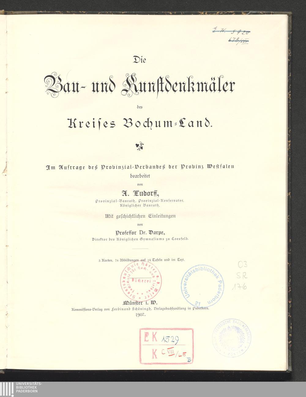 Die Bau- und Kunstdenkmäler des Kreises Bochum-Land / bearb. von A. Ludorff