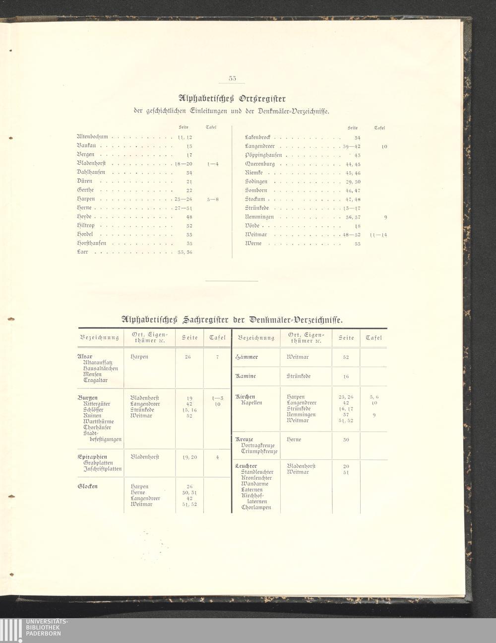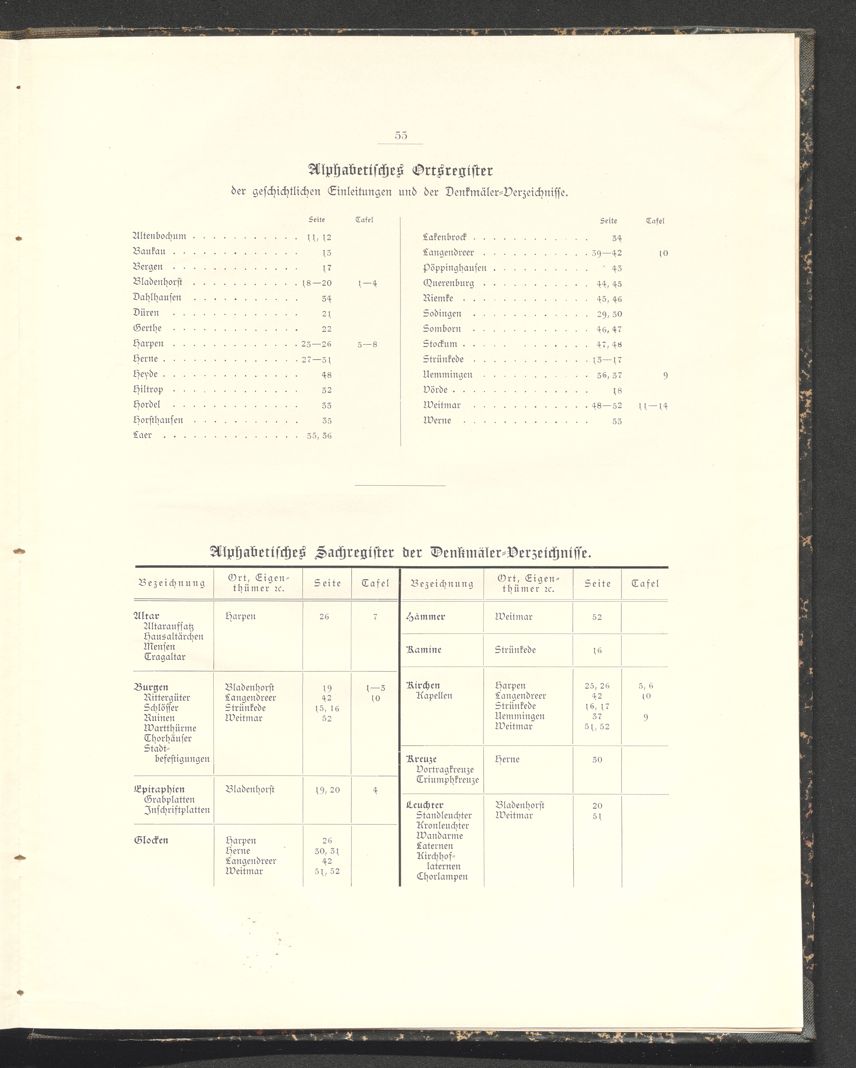 Alphabetisches Sachregister der Denkmäler-Verzeichnisse.