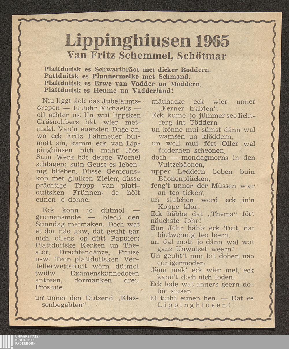 Heimat und Freundschaft : ein Gedichtbüchlein in lippisch Platt und Hochdeutsch / von August Bolhöfer