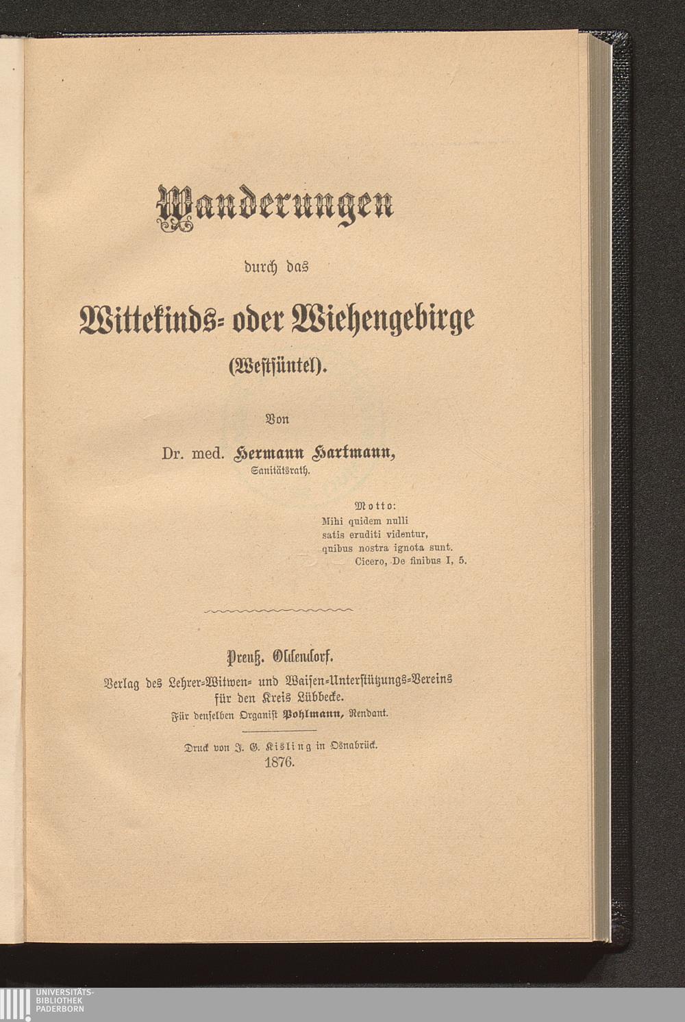 Wanderungen durch das Wittekinds- oder Wiehengebirge (Westsüntel) / von Hermann Hartmann