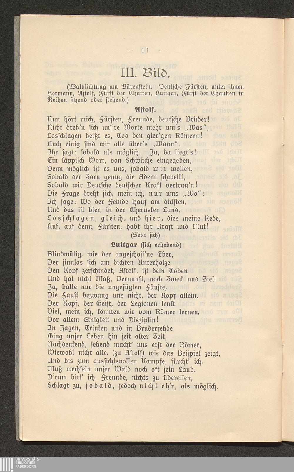 Hermann der Cherusker : Festspiel mit Chören in 6 Bildern ; [Textbuch.] / Text und Musik von August Weweler