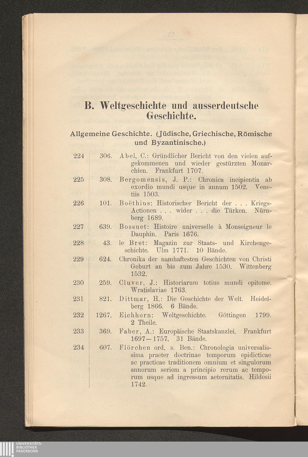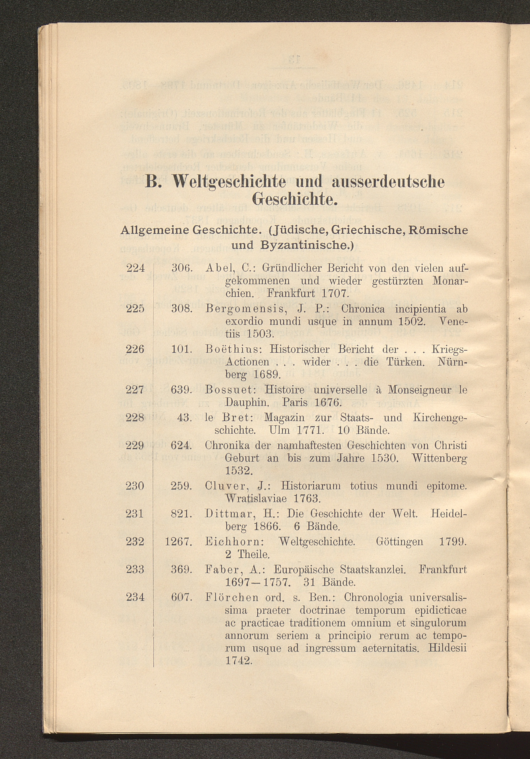 B. Weltgeschichte und ausserdeutsche Geschichte. Allgemeine Geschichte. (Jüdische,[...]