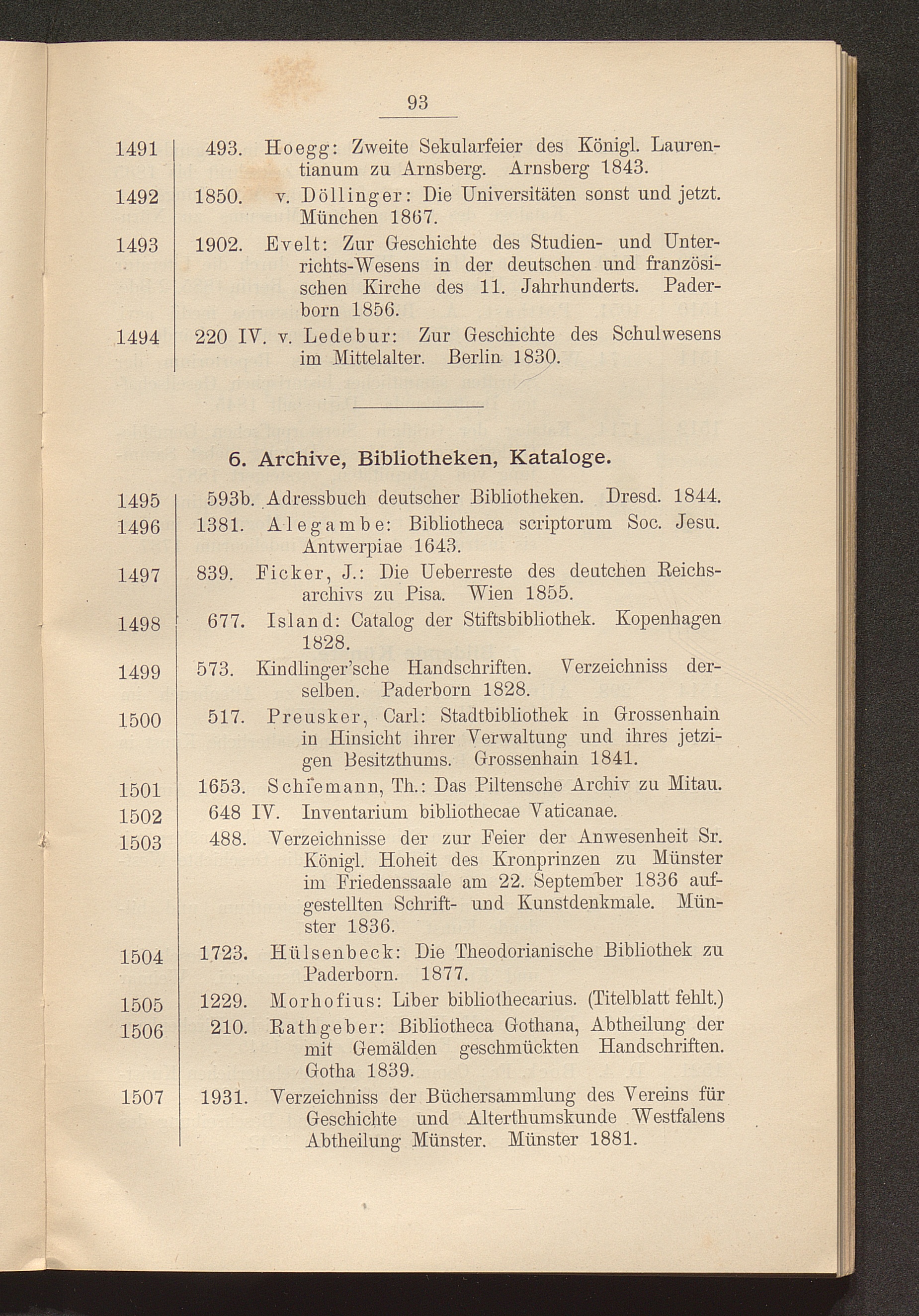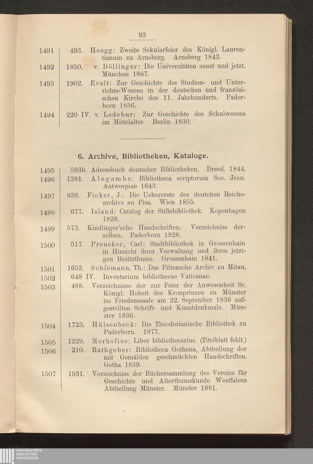6. Archive, Bibliotheken, Kataloge.