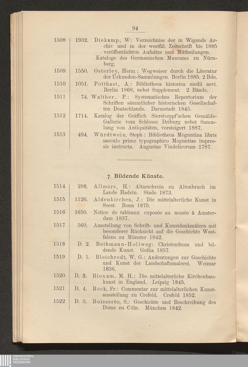 Verzeichniss der Büchersammlung des Vereins für Geschichte und Alterthumskunde Westfalens,[...]