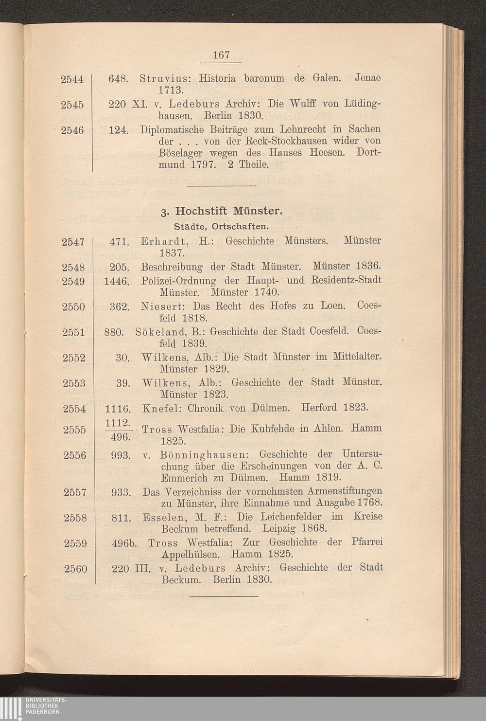 3. Hochstift Münster. Städte, Ortschaften.