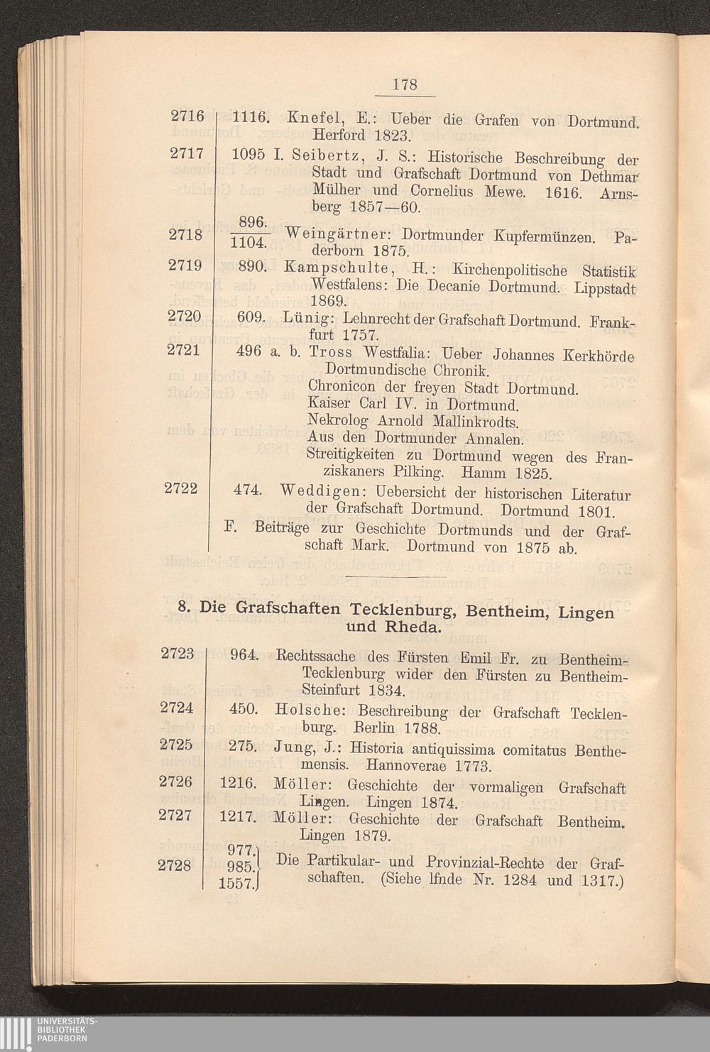 8. Die Grafschaften Tecklenburg, Bentheim, Lingen und Rheda.