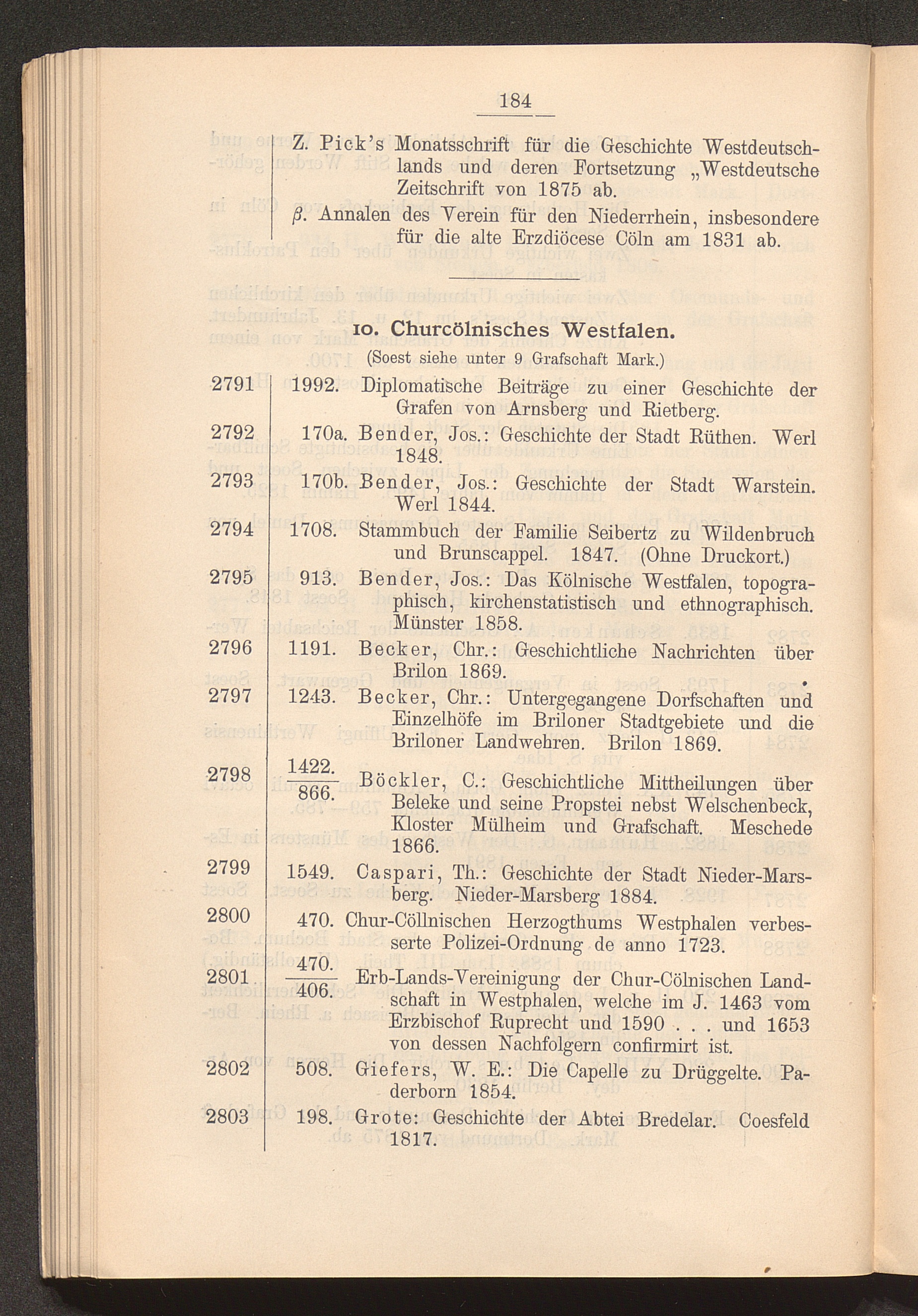 Verzeichniss der Büchersammlung des Vereins für Geschichte und Alterthumskunde Westfalens,[...]