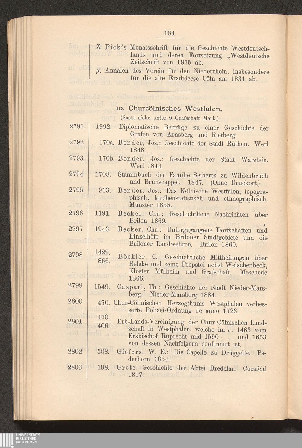 Verzeichniss der Büchersammlung des Vereins für Geschichte und Alterthumskunde Westfalens, Abtheilung Paderborn / zusammengestellt von B. Stolte