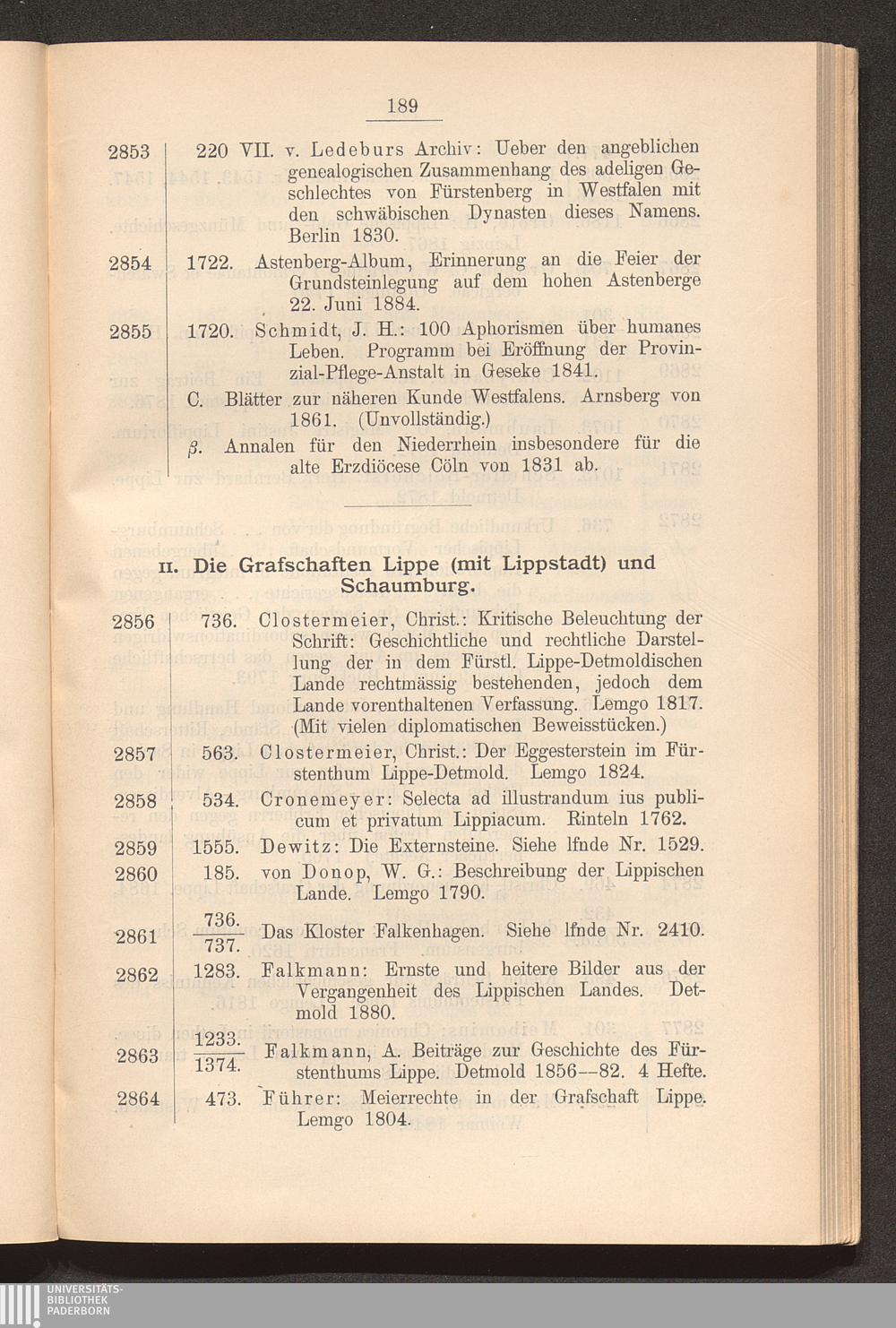 Verzeichniss der Büchersammlung des Vereins für Geschichte und Alterthumskunde Westfalens, Abtheilung Paderborn / zusammengestellt von B. Stolte