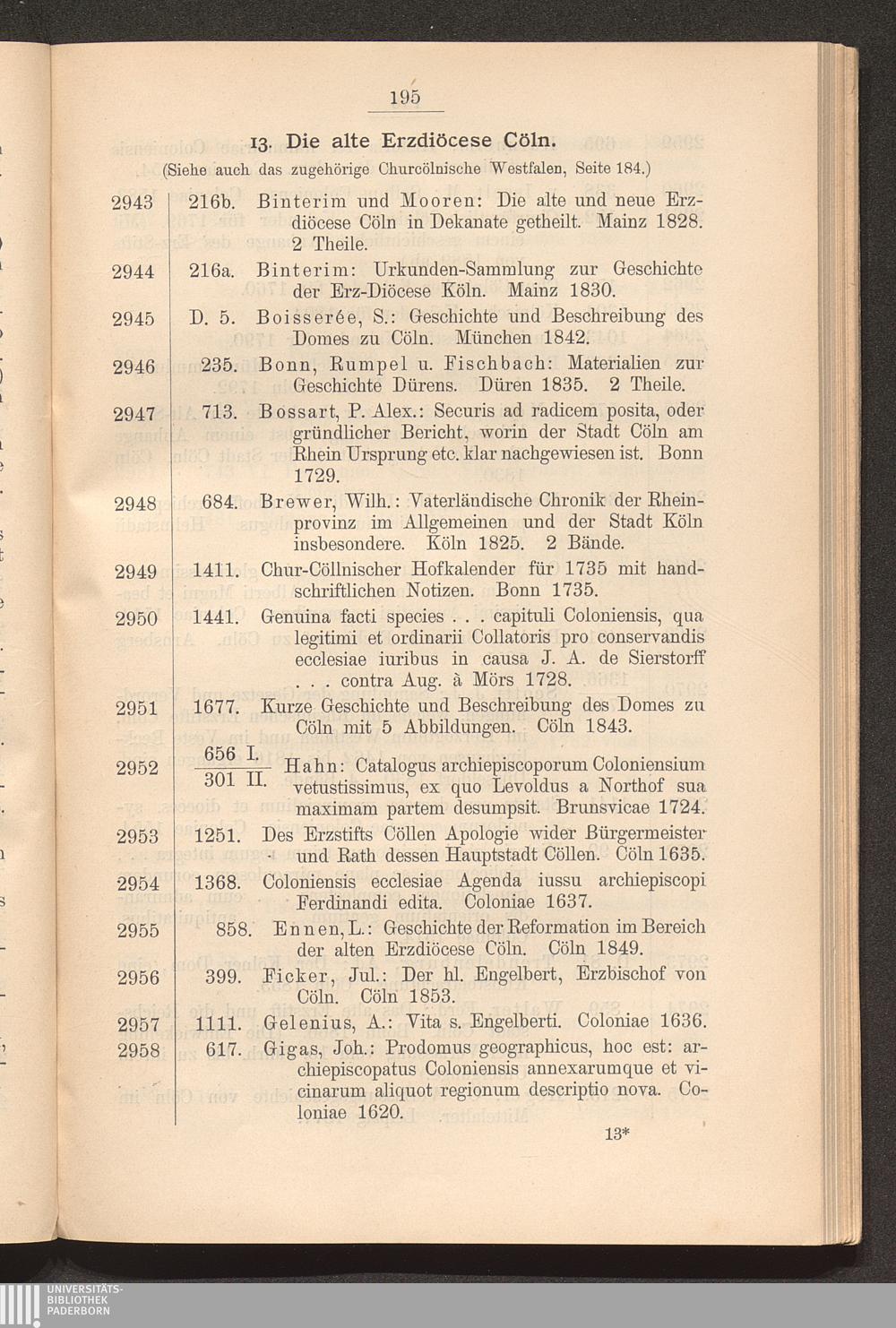 13. Die alte Erzdiöcese Cöln.