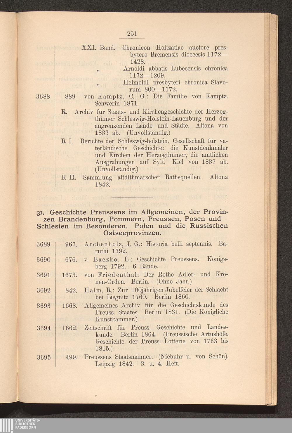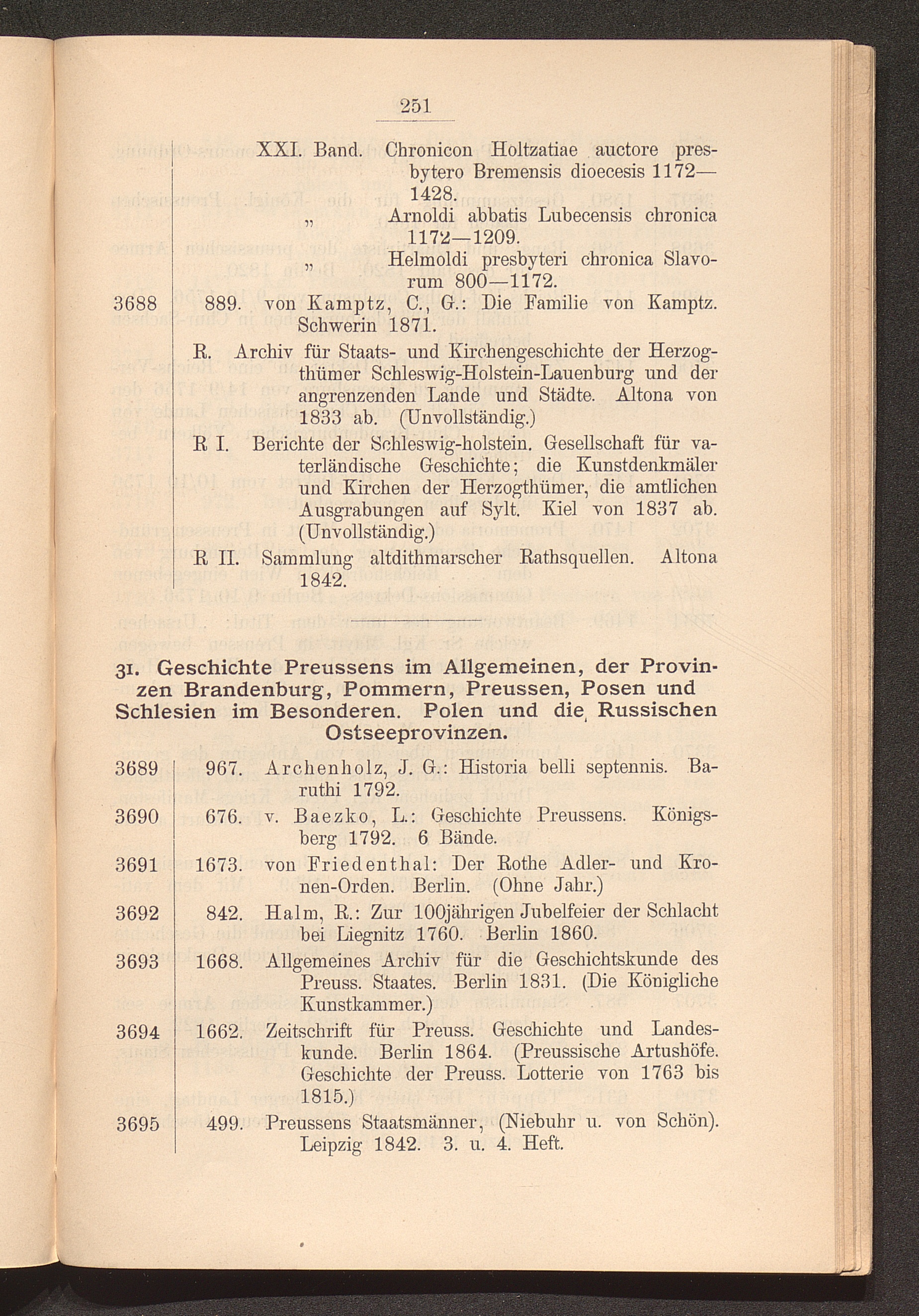 31. Geschichte Preussens im Allgemeinen, der Provinzen Brandenburg, Pommern, Preussen,[...]