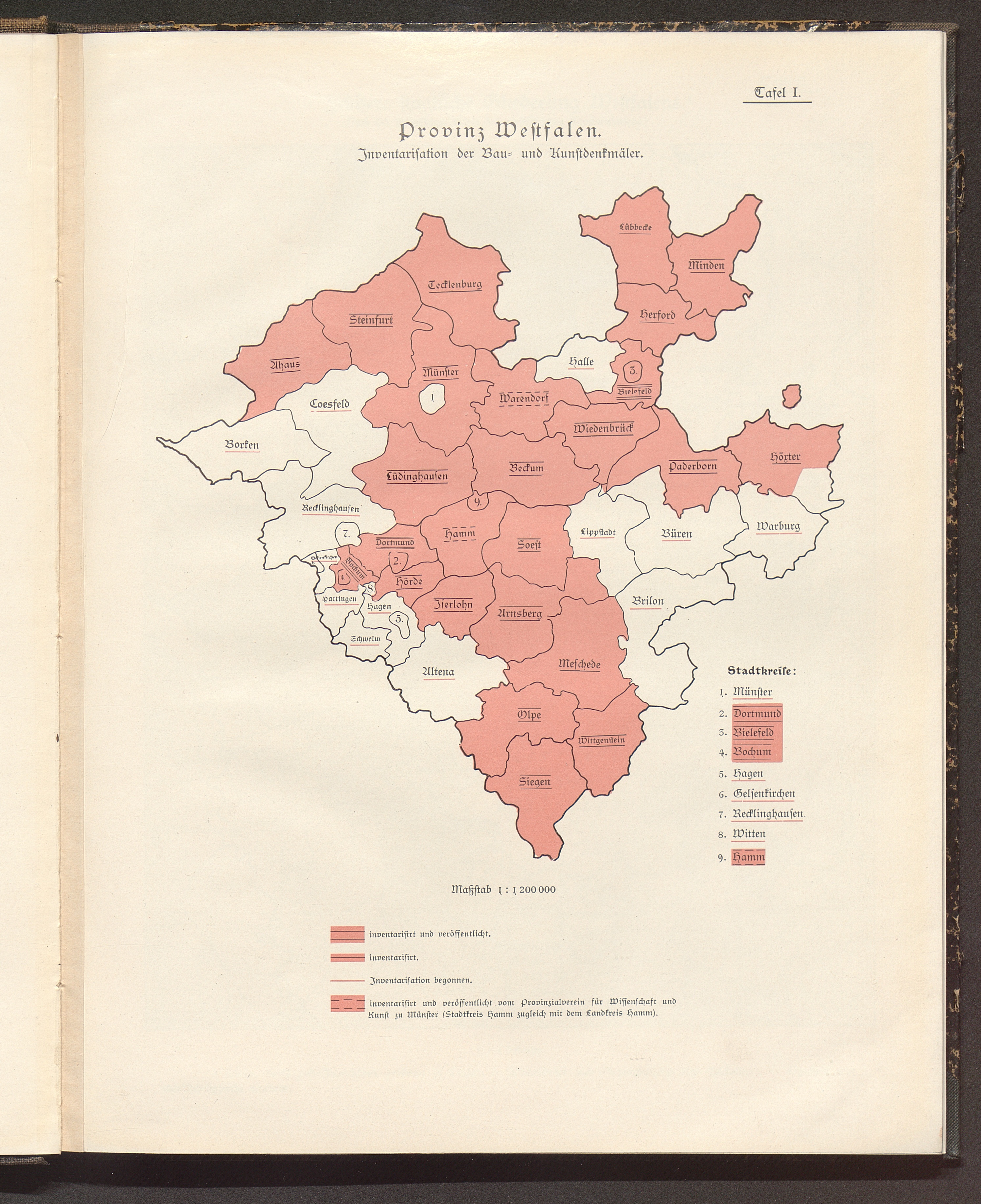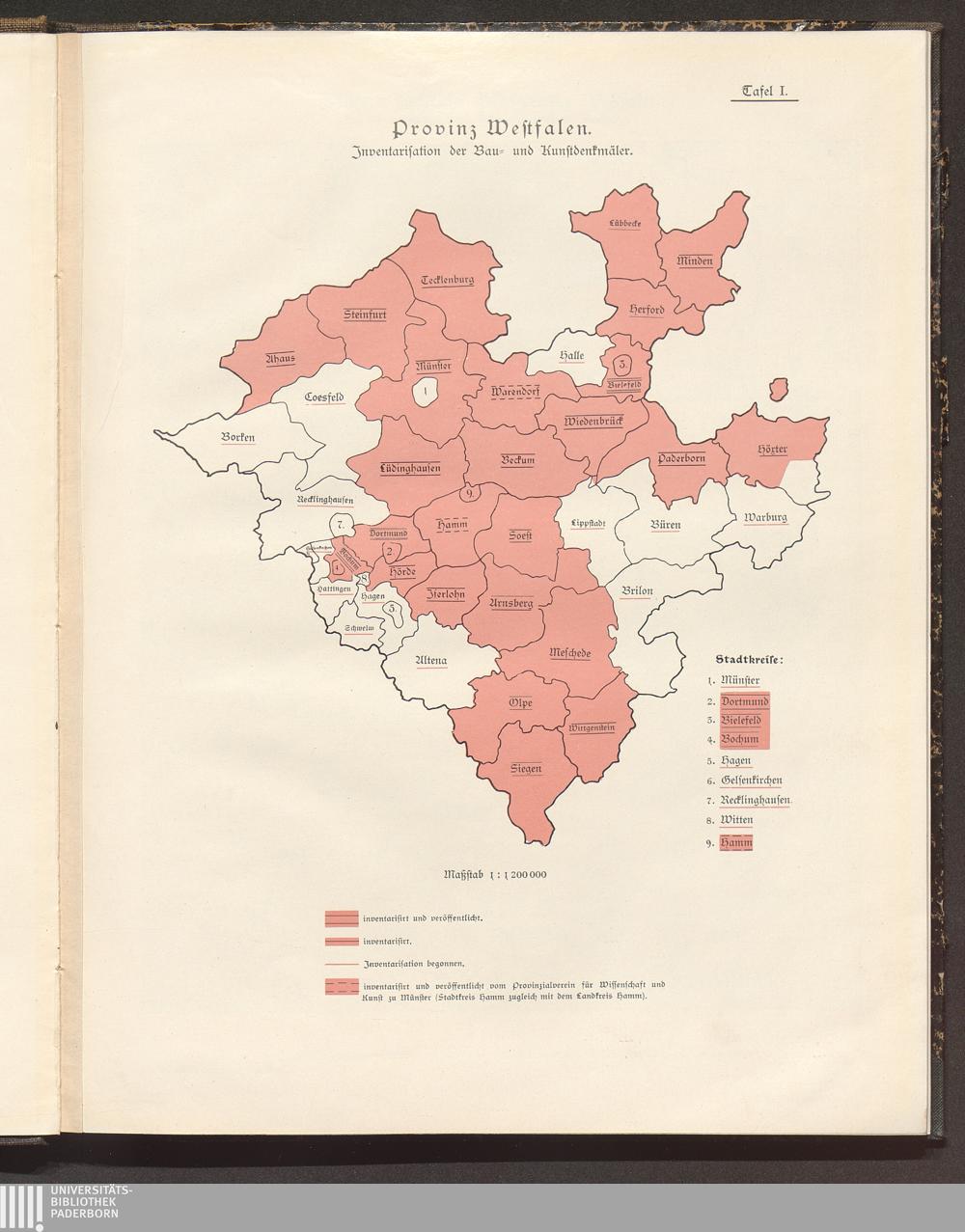 Karte der Provinz Westfalen (Stand der Inventarisationsarbeiten)