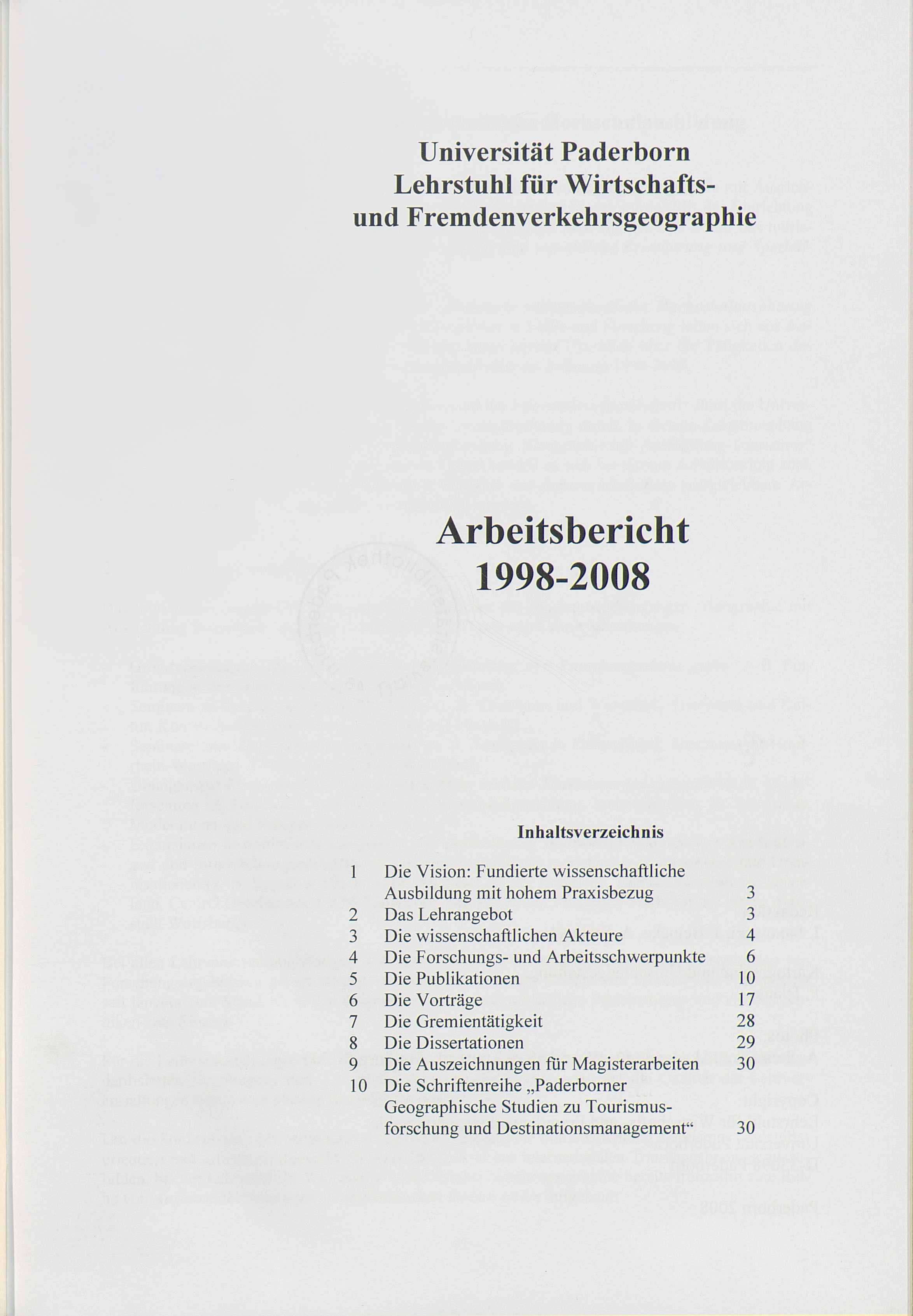 10 Die Schriftenreihe "Paderborner Geographische Studien zu Tourismusforschung und Destinationsmanagement"