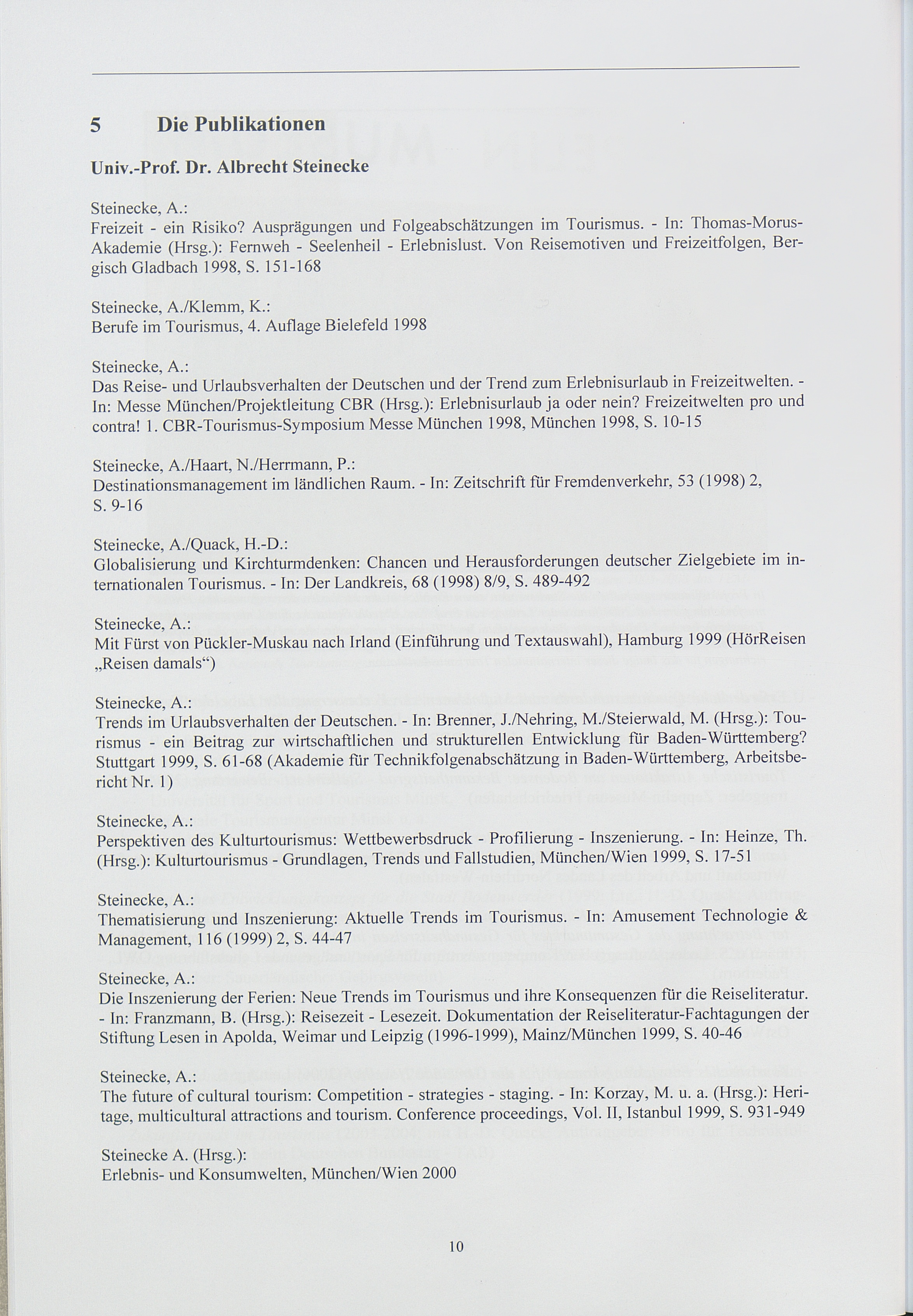 10 Die Schriftenreihe "Paderborner Geographische Studien zu Tourismusforschung und Destinationsmanagement"